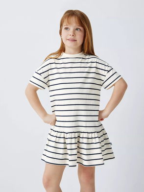 The top half is a classic jersey stripe tee with sequin cherry detailing, whilst the bottom half is a full skirt.