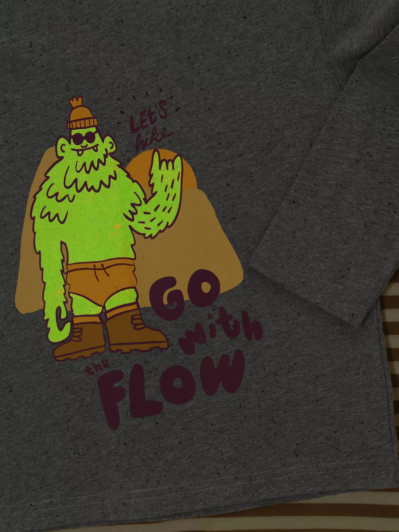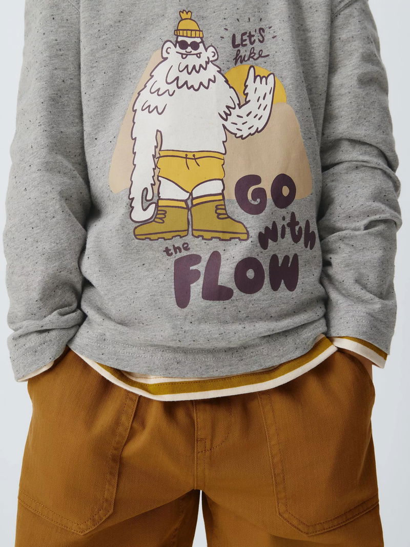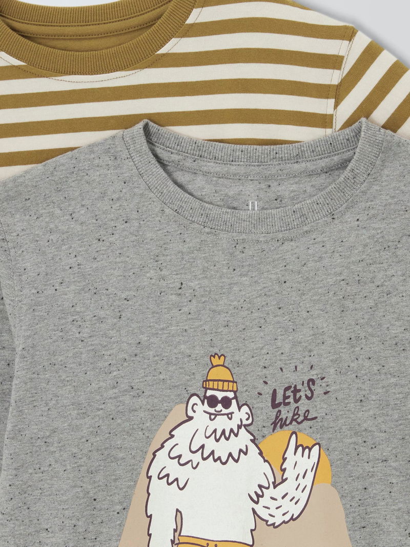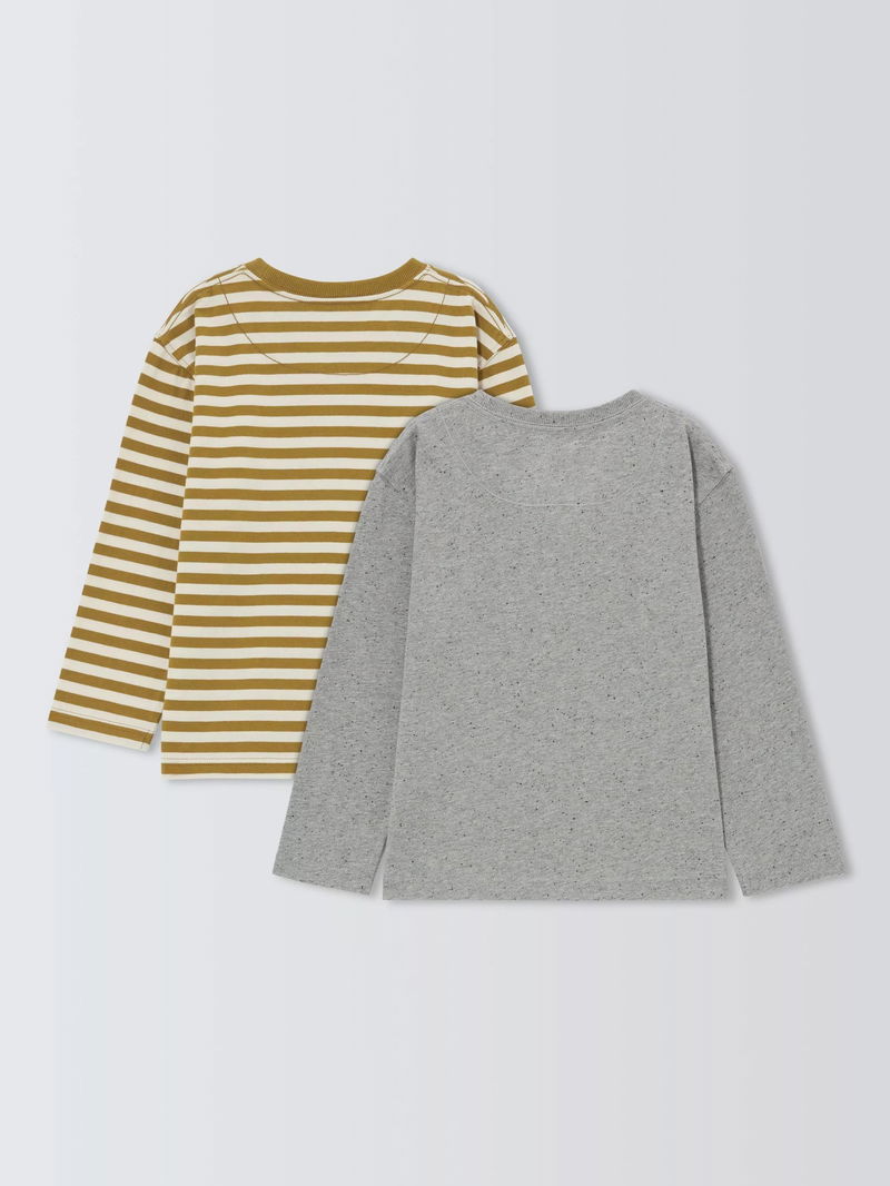 Kids' Stripe/Yeti Long Sleeve Tops, Pack Of 2, Grey/Yellow