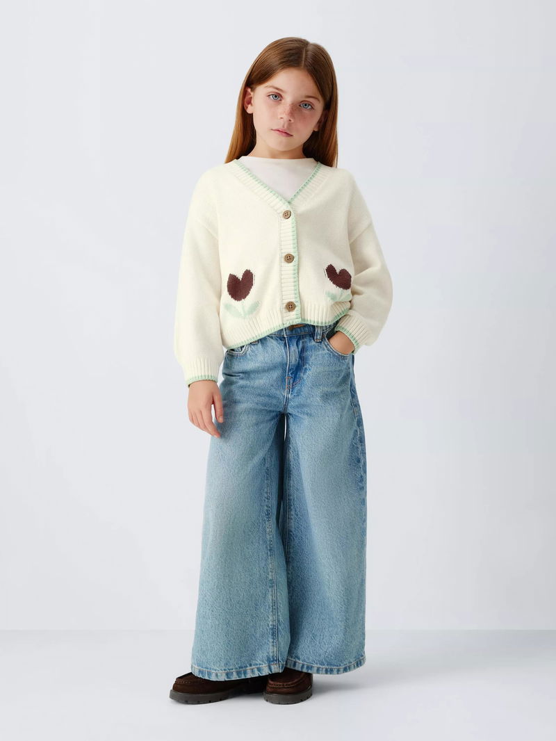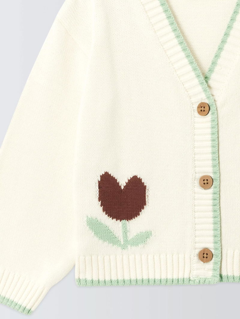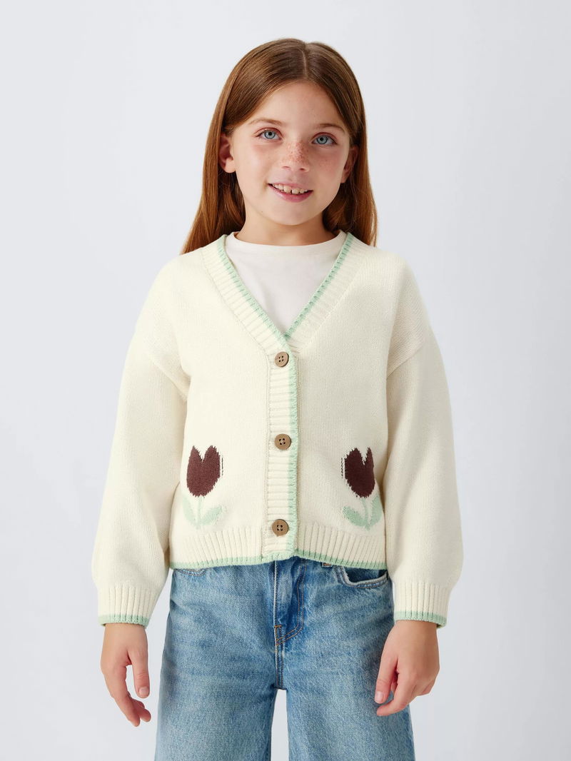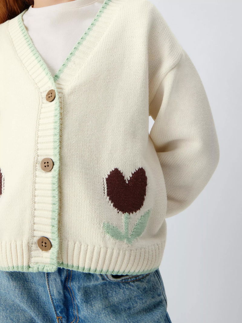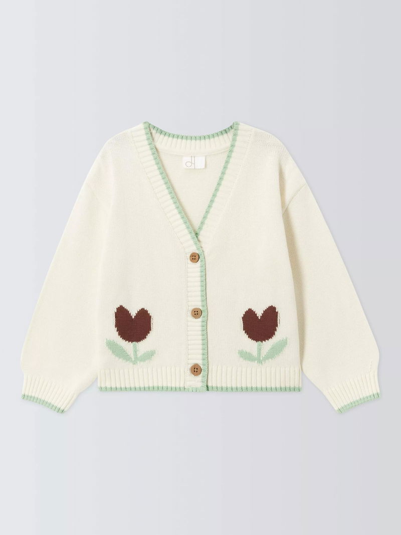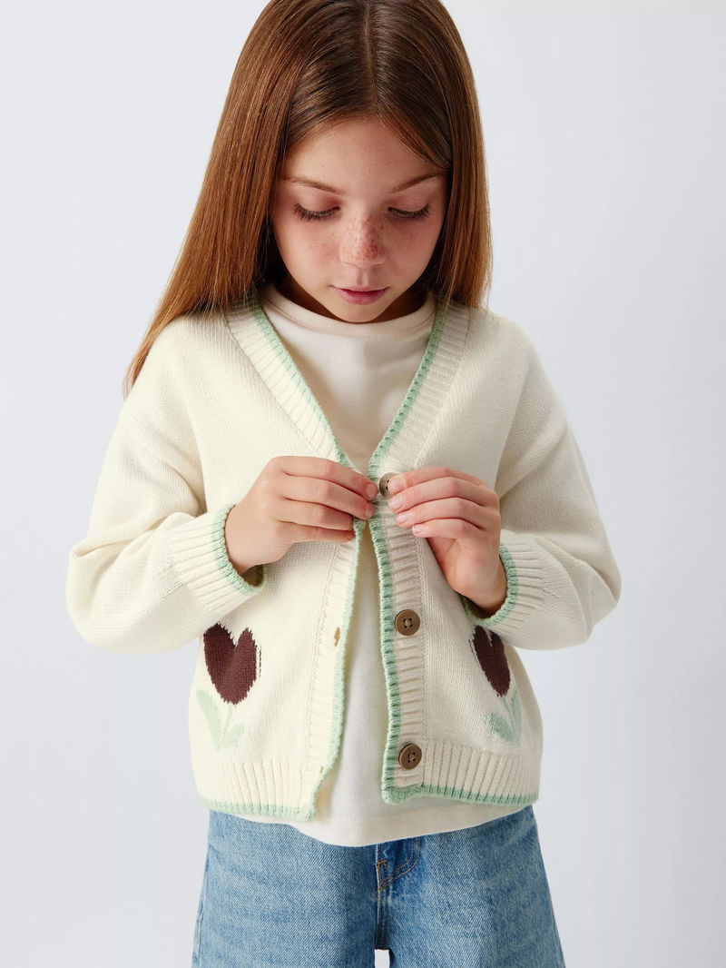 Kids' V-Neck Tulip Cardigan, Cream, Pink