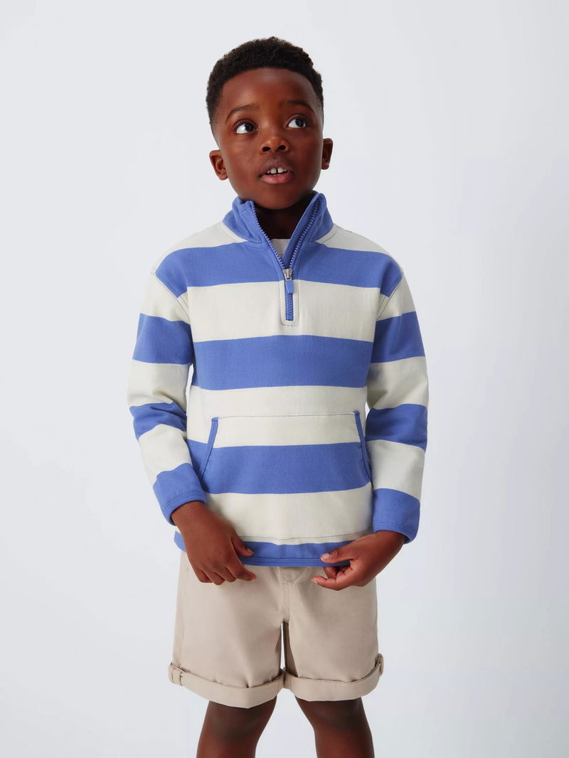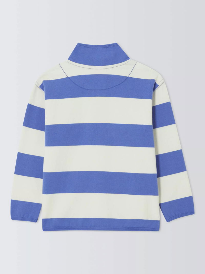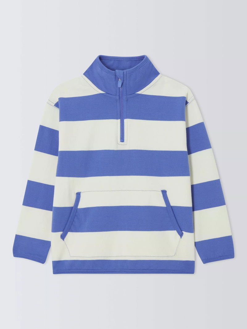 Kids' Zip Neck Stripe Sweatshirt, White Blue Stripe