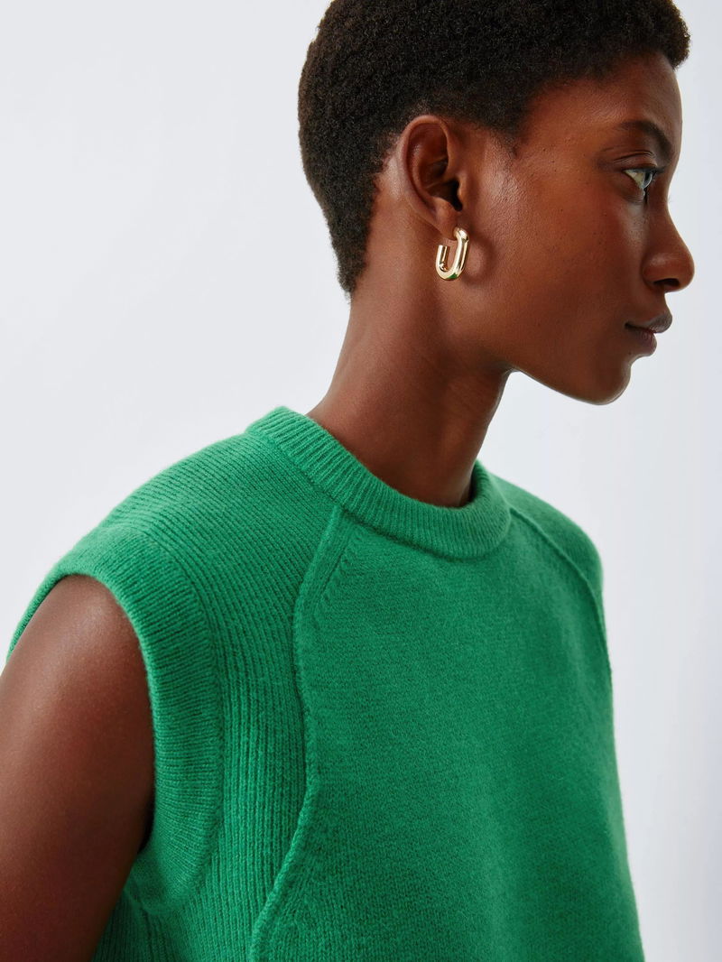 Lambswool Saddle Shoulder Tank Top, Pine Green
