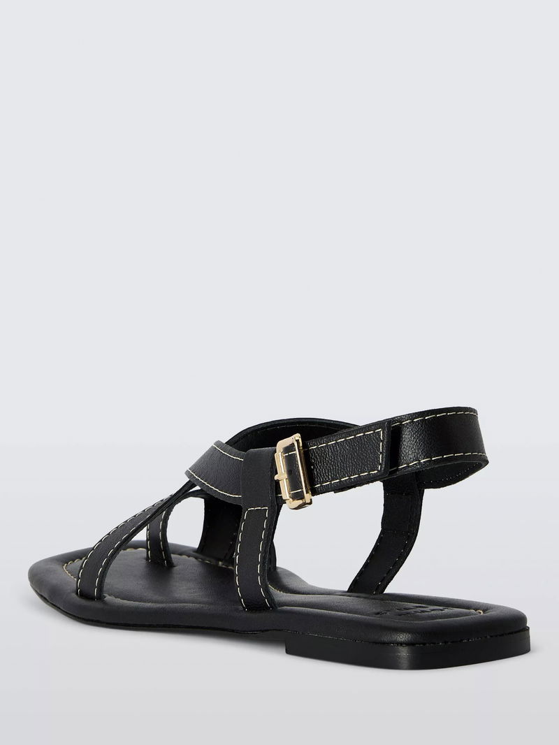 Larnce Leather Contrast Stitch Toe Loop Flat Strappy Sandals, Black