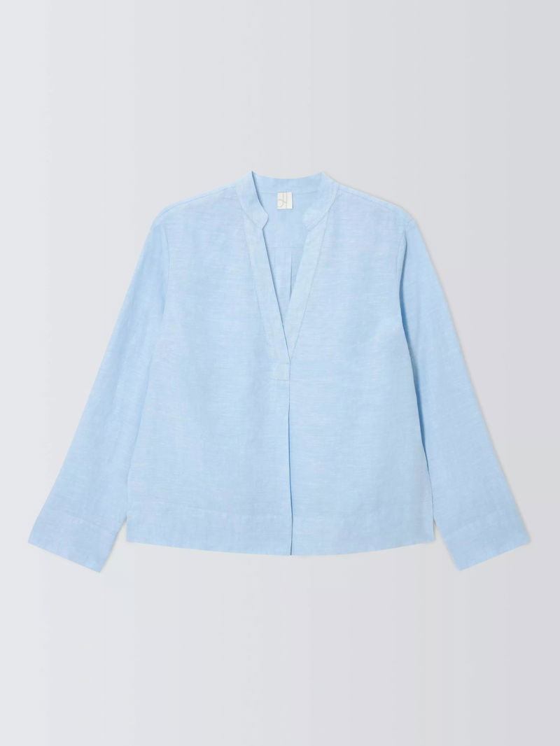 Linen V-Neck Blouse, Light Blue