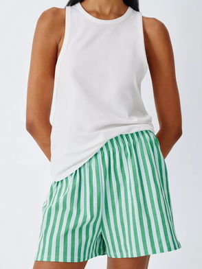 Description: Keep cool on hot nights with this shorty pyjama set. Made from pure cotton, this top is a simple vest style, whilst the shorts come in a classic stripe. Materials: 100% cotton Product Code: 112922301