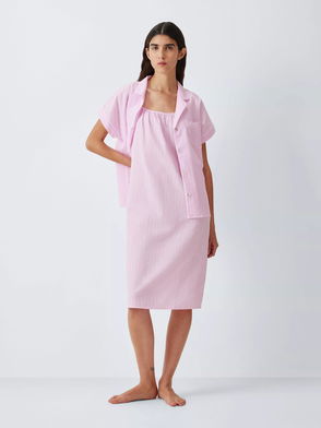 This yarn dyed woven stripe nightshirt is made from pure cotton with a soft, comfortable feel. They've elevated the shape with a curved, split hem for a relaxed fit and added piping along the placket for a premium touch. An easy sleep shirt to slip on, we've included fold-up sleeves which you can adjust and fasten to your comfort.