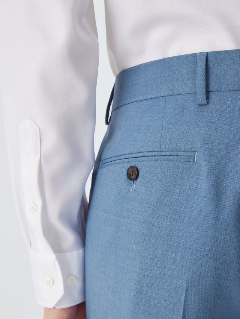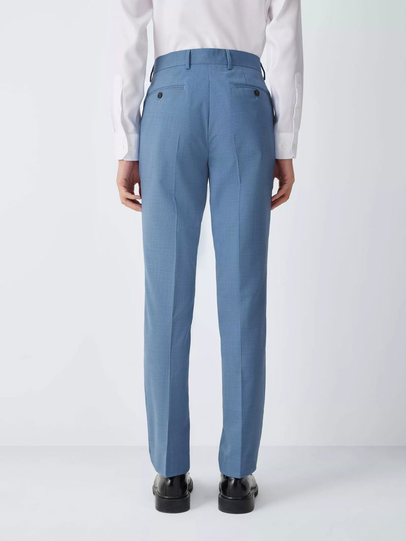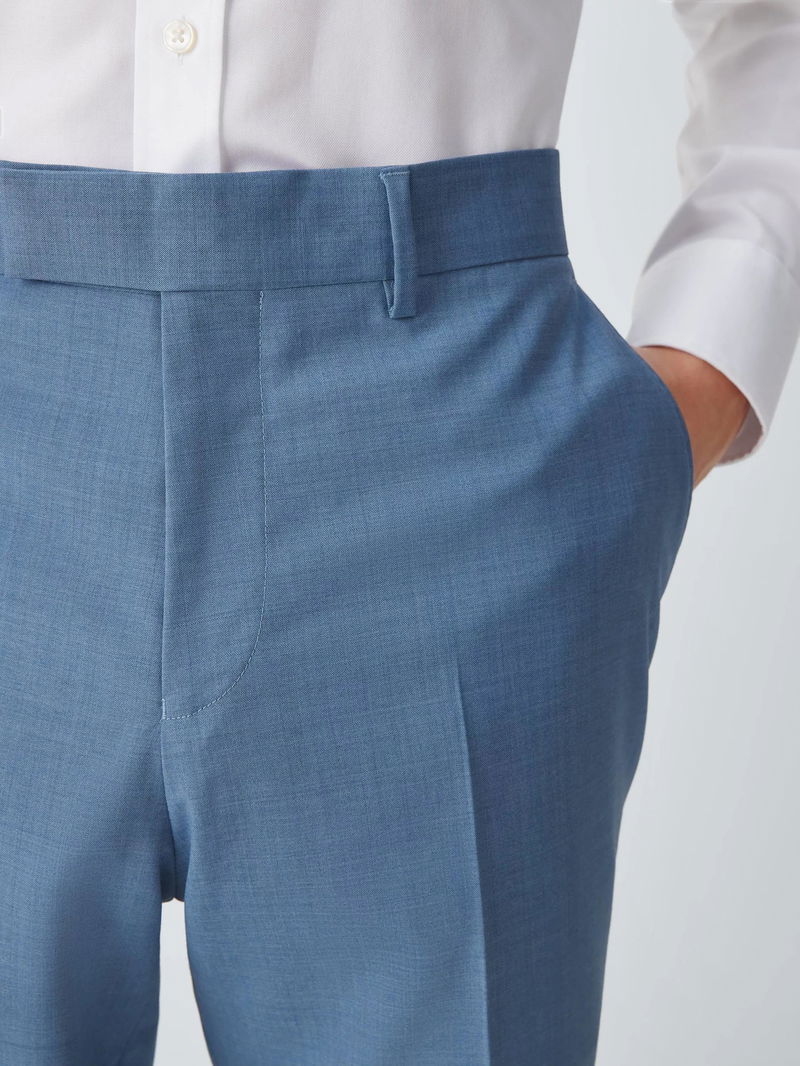 Refined depth meets modern tailoring in these wool trousers, distinguished by a softly textured melange finish that offers a sophisticated alternative to solid tones. The subtle tonal variations in the weave provide a contemporary visual interest, making it a versatile standout for both professional and social settings. The trousers are cut with a clean, tapered leg and traditional pressed creases for a polished silhouette. Crafted from 100% wool, the natural fibres offer exceptional breathability and temperature regulation for year-round comfort. This heritage material is chosen for its inherent resilience and crease-resistance, ensuring the trousers maintain an impeccable finish even through travel or long events. Detailed with internal waistband shirting grips and a secure hook-and-bar closure, this ensemble blends heritage craftsmanship with modern functional excellence.