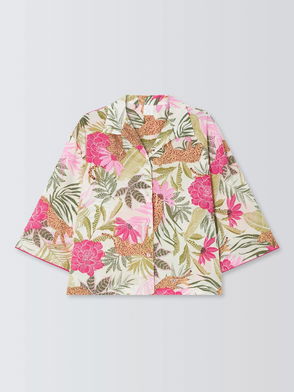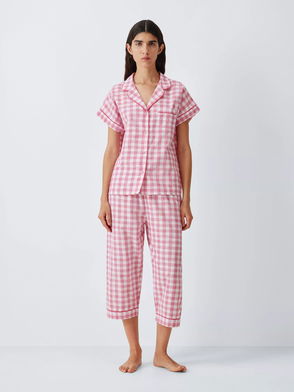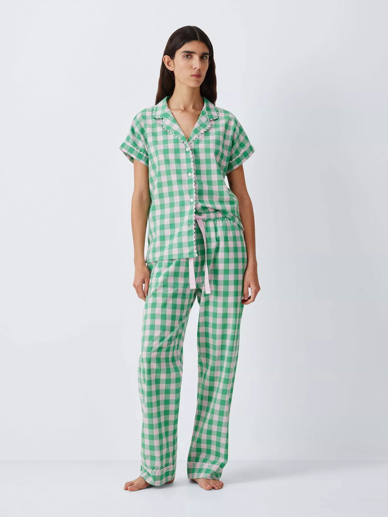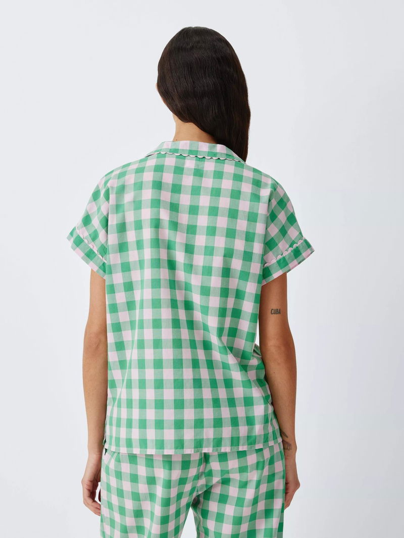 Mix & Match Ric Rac Gingham Pure Cotton Pyjama Shirt, Pink/Green