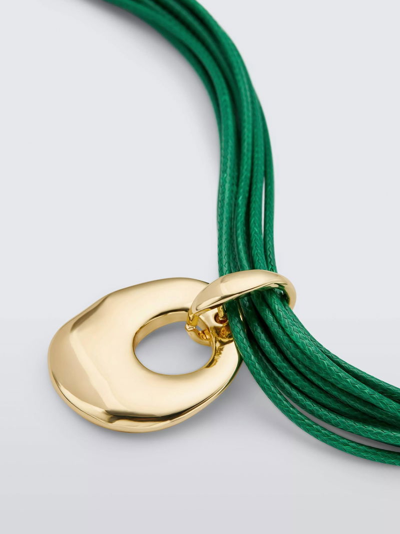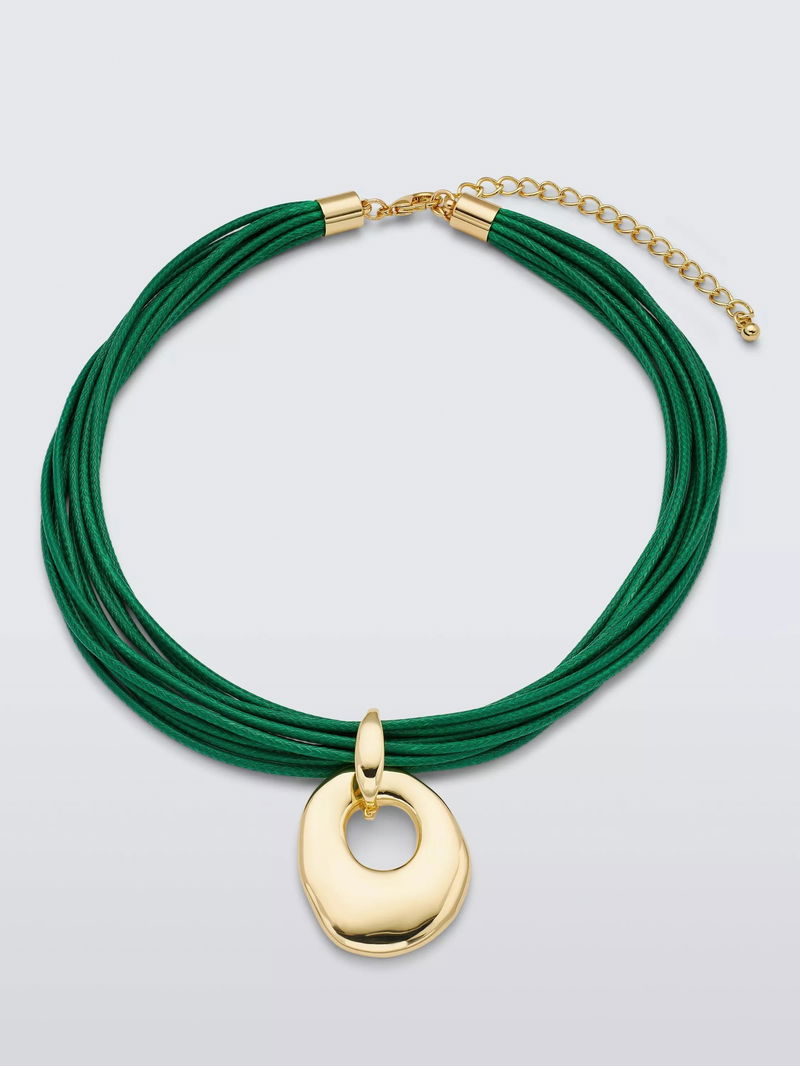 Multi Cord And Open Drop Pendant Necklace, Green/Gold