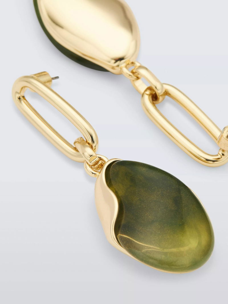 Open Oval & Resin Drop Earrings, Green