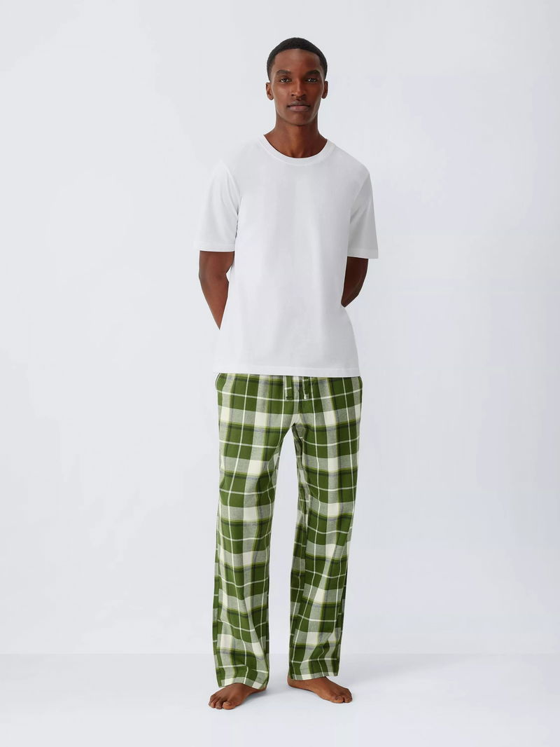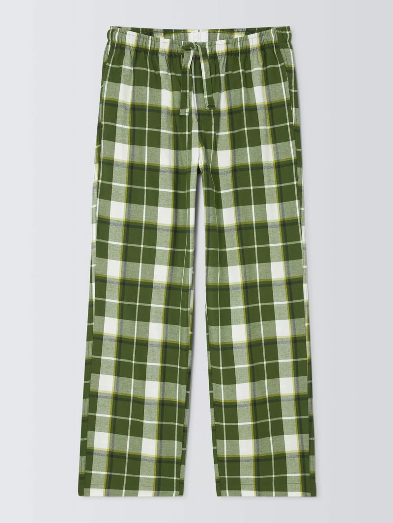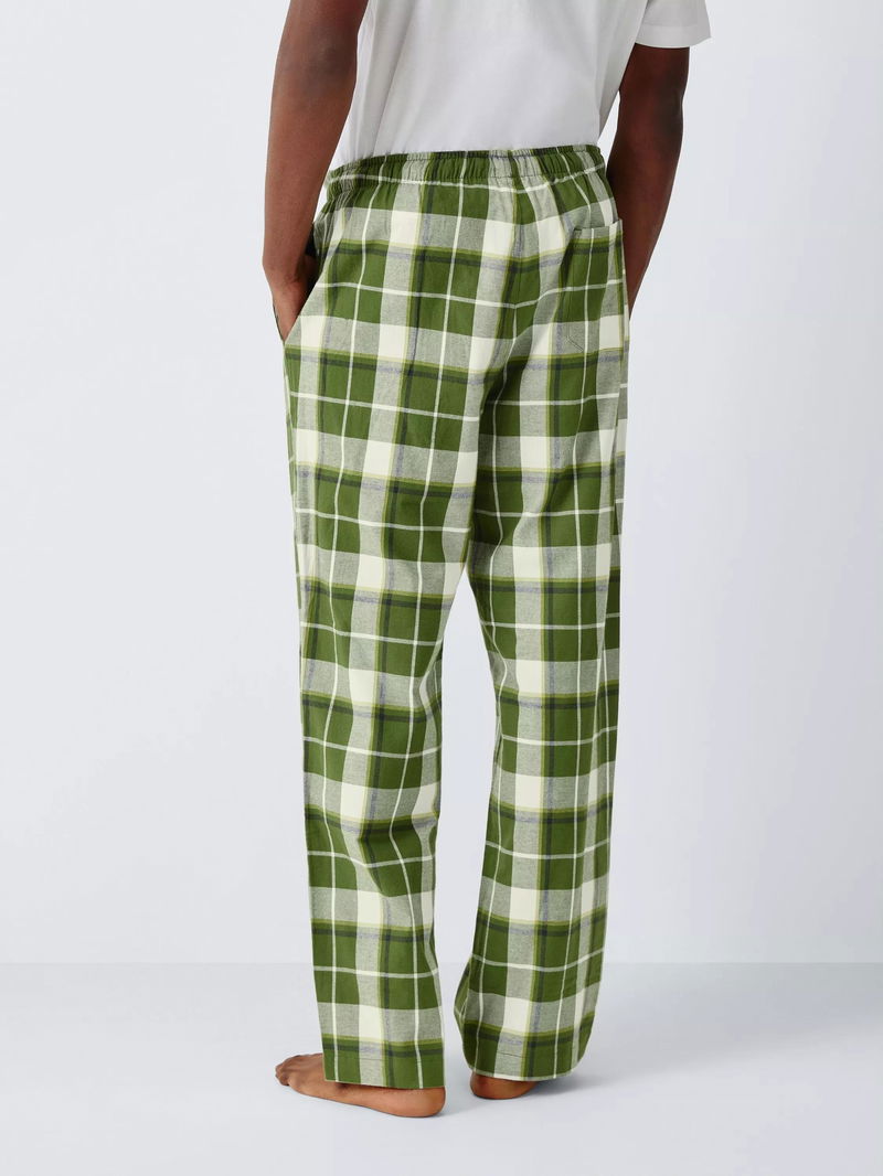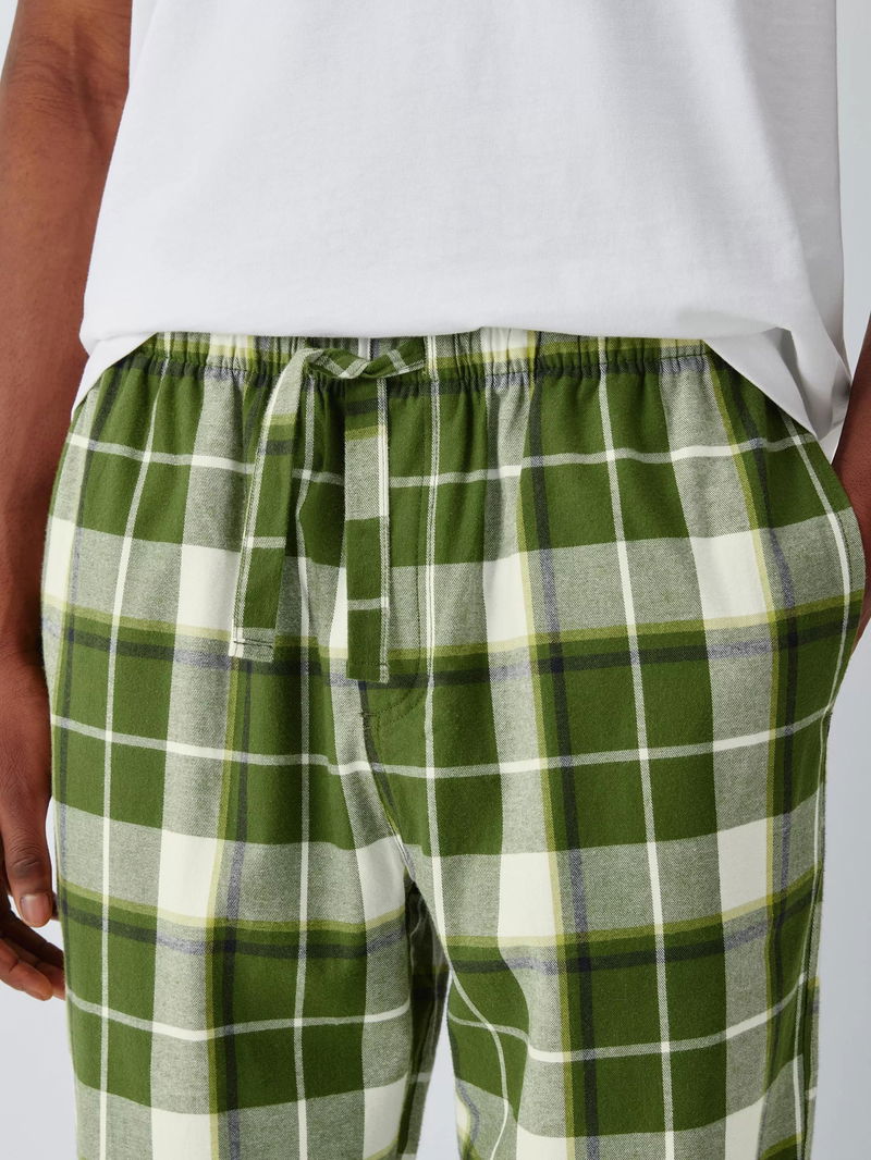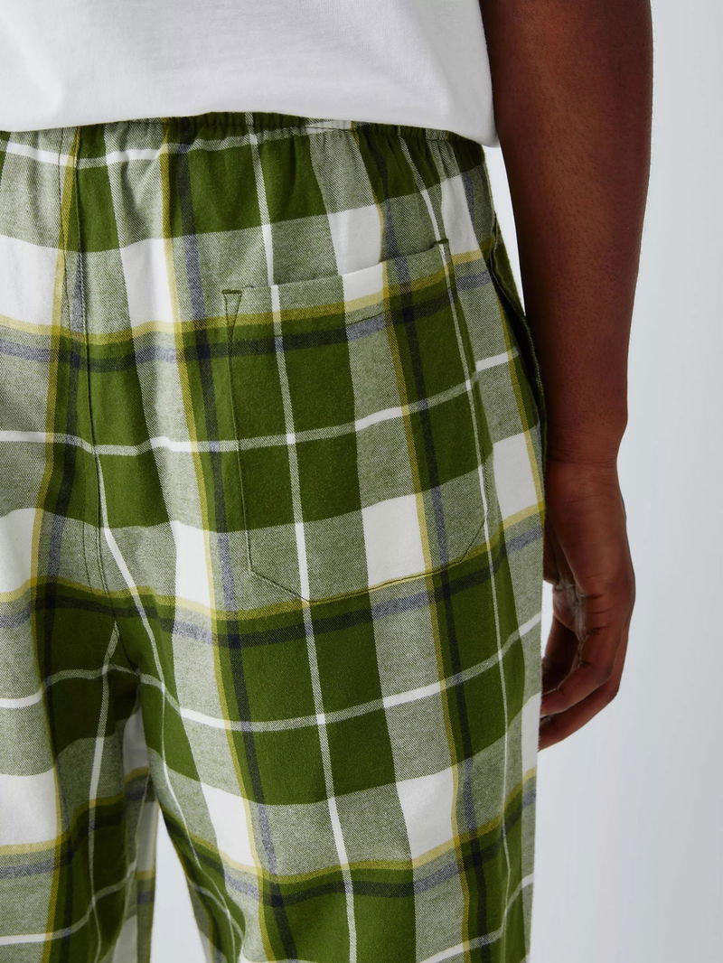 Organic Cotton Check Pyjama Trousers, Green Olive