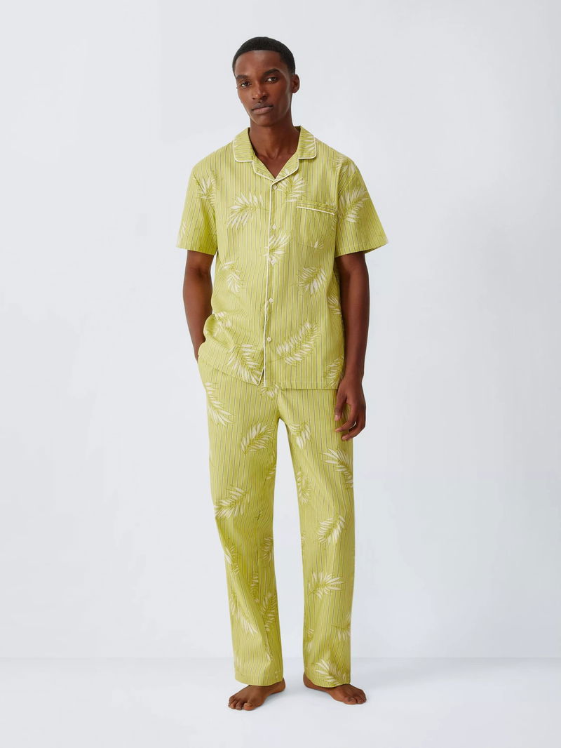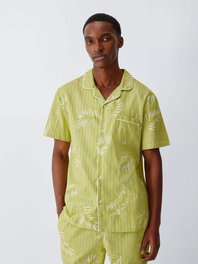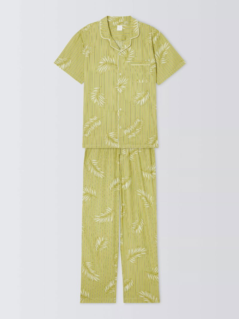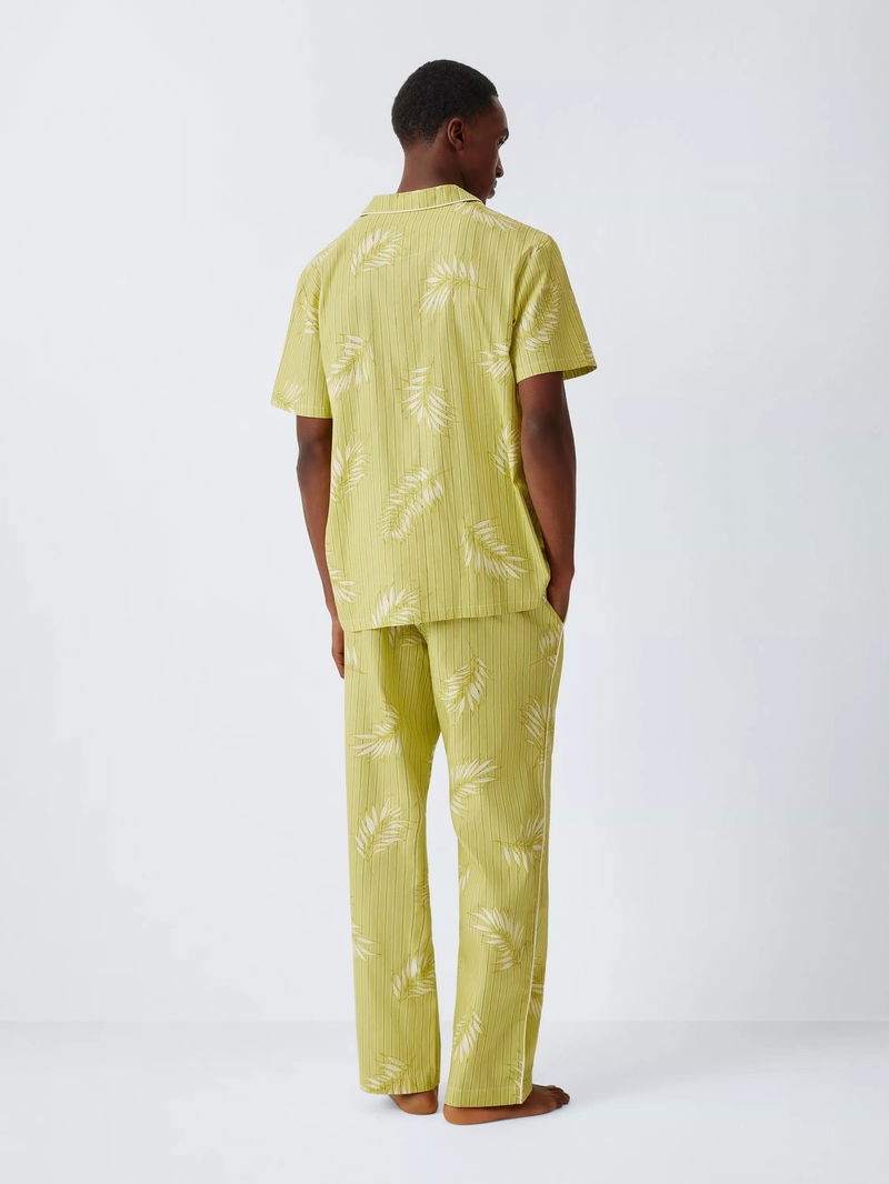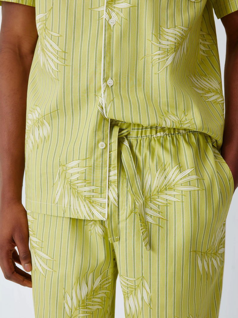 Organic Cotton Palm Stripe Short Sleeve Pyjama Set, Green Mid