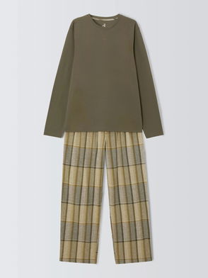 Kick back, relax, lounge away ...or get some shut-eye, with this super-comfy and light pj set. It's crafted from pure organic cotton for lightness, resilience, and comfort, with a short sleeved tee top and loose-fitting patterned trousers.