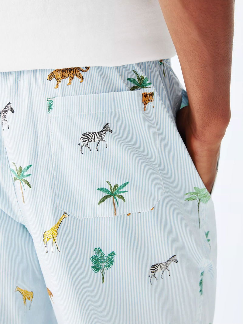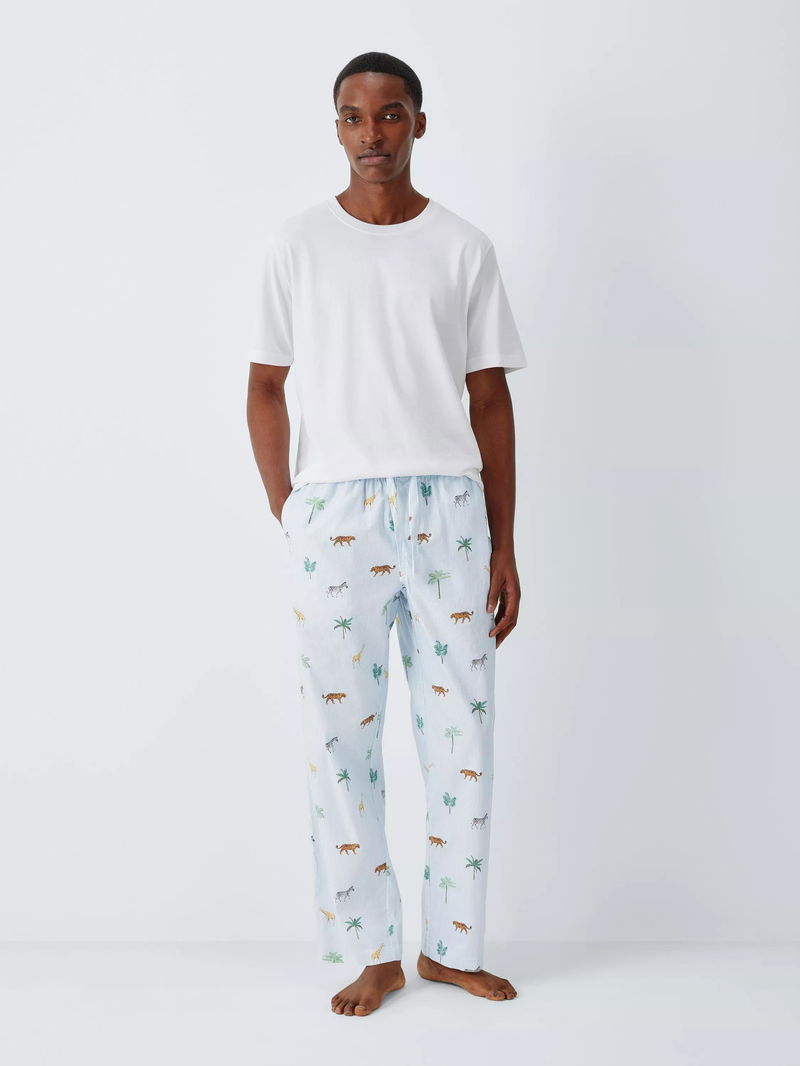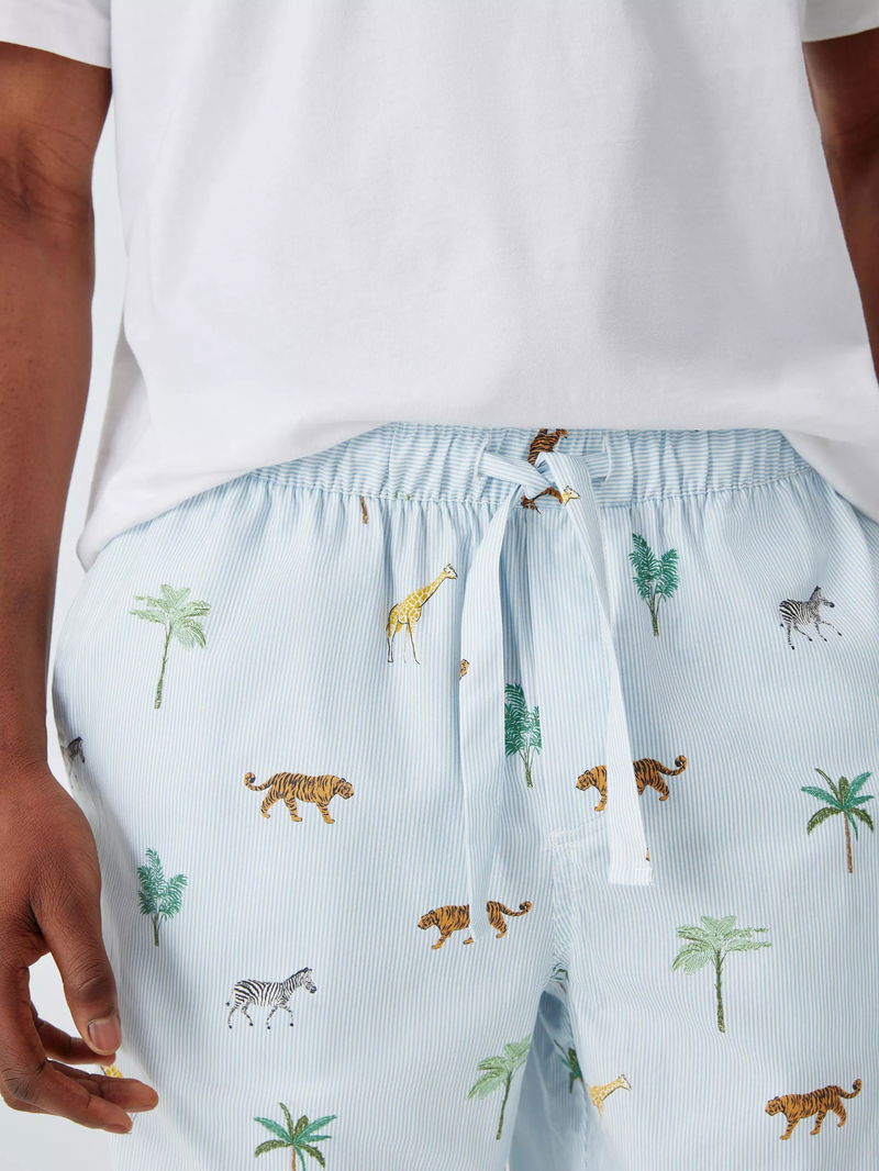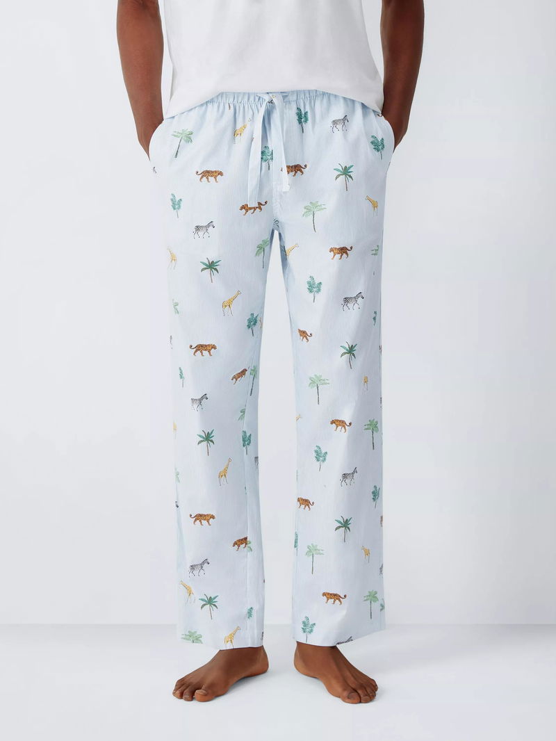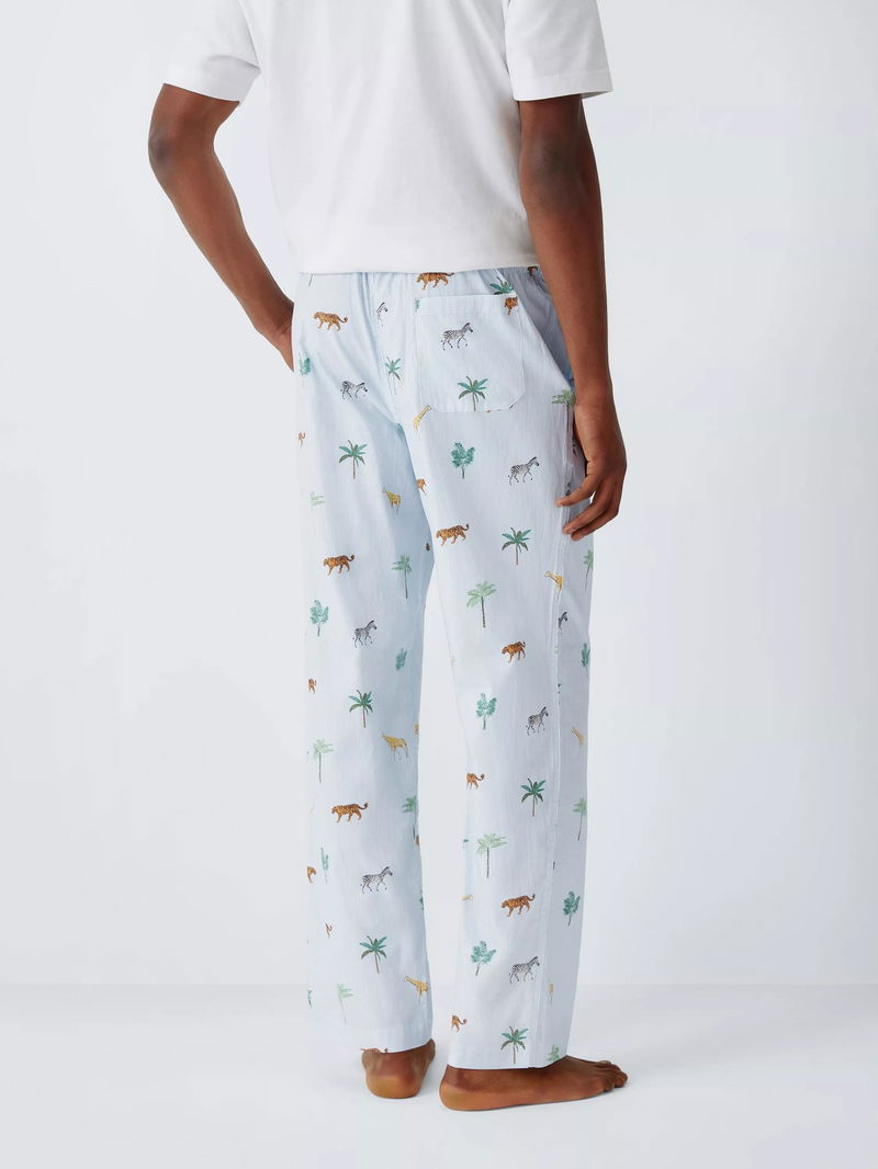 Organic Cotton Safari Print Pyjama Trousers, Blue Sky