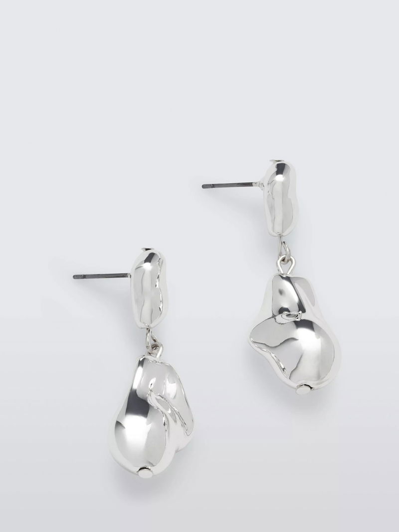 Organic Stud & Drop Earrings, Silver