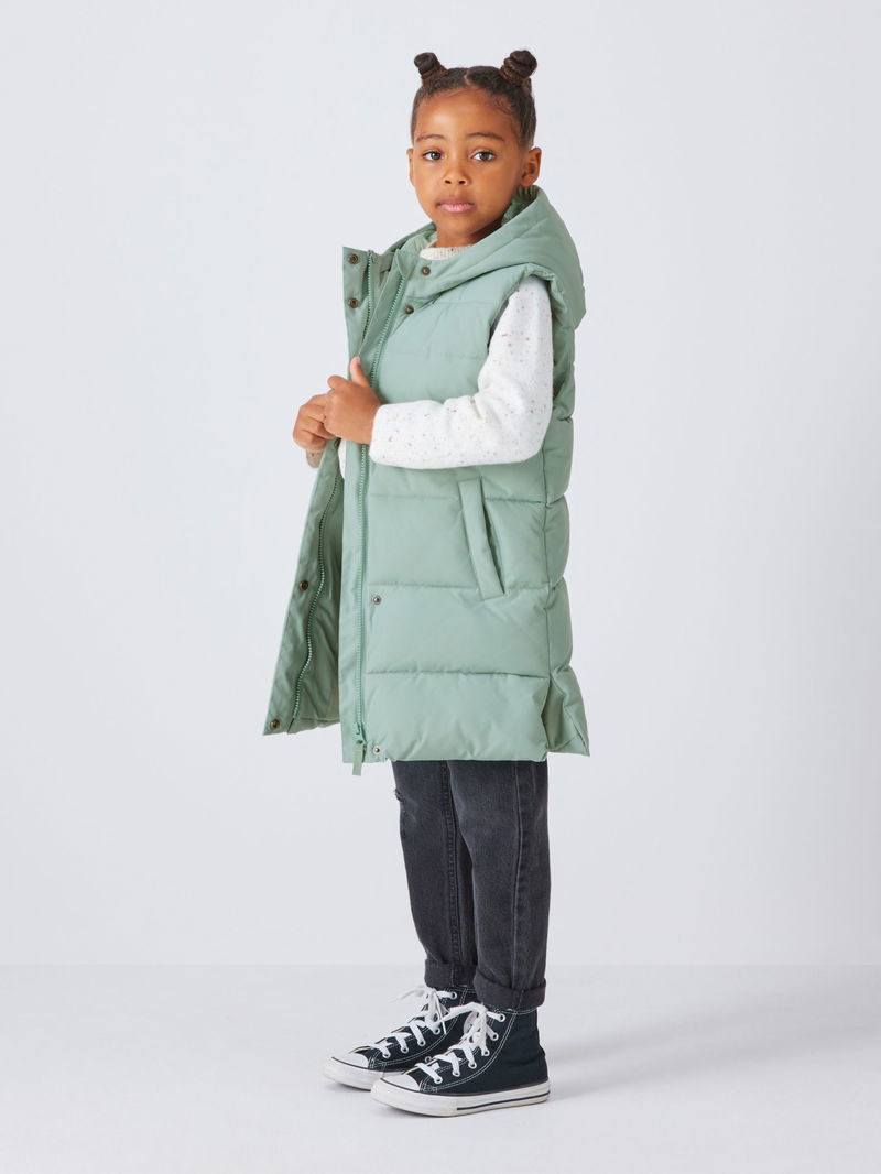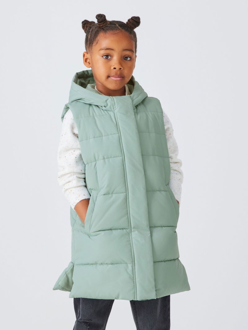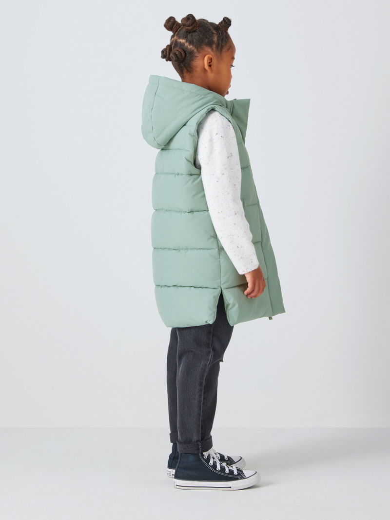 A longline update on the tried and tested puffer gilet, this sleeveless jacket is coated with a shower resistant coating.