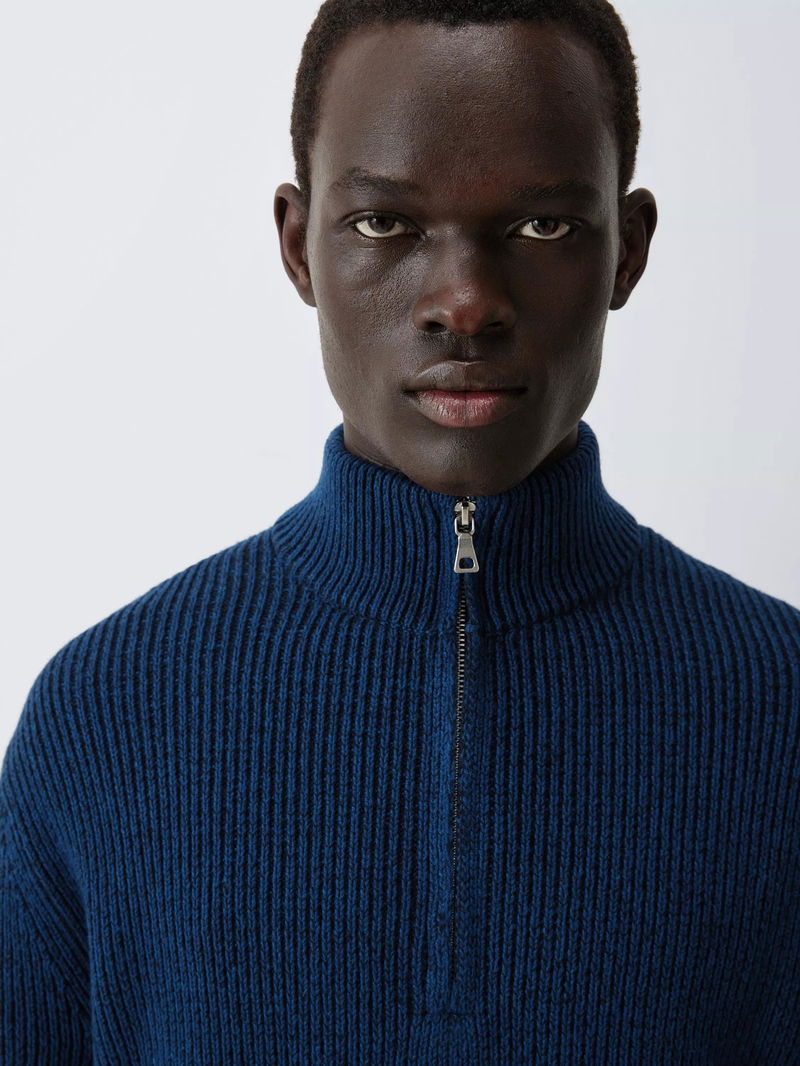 Plated Waffle Knit Half Zip Jumper, Navy/Blue