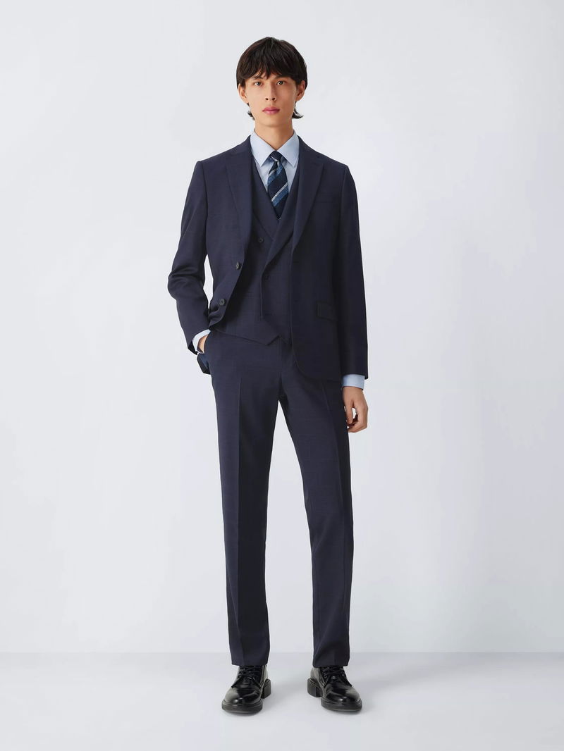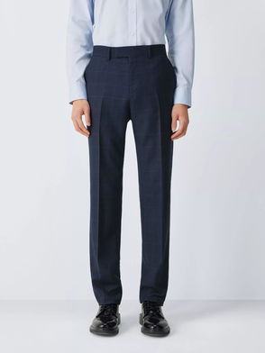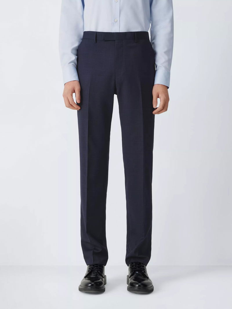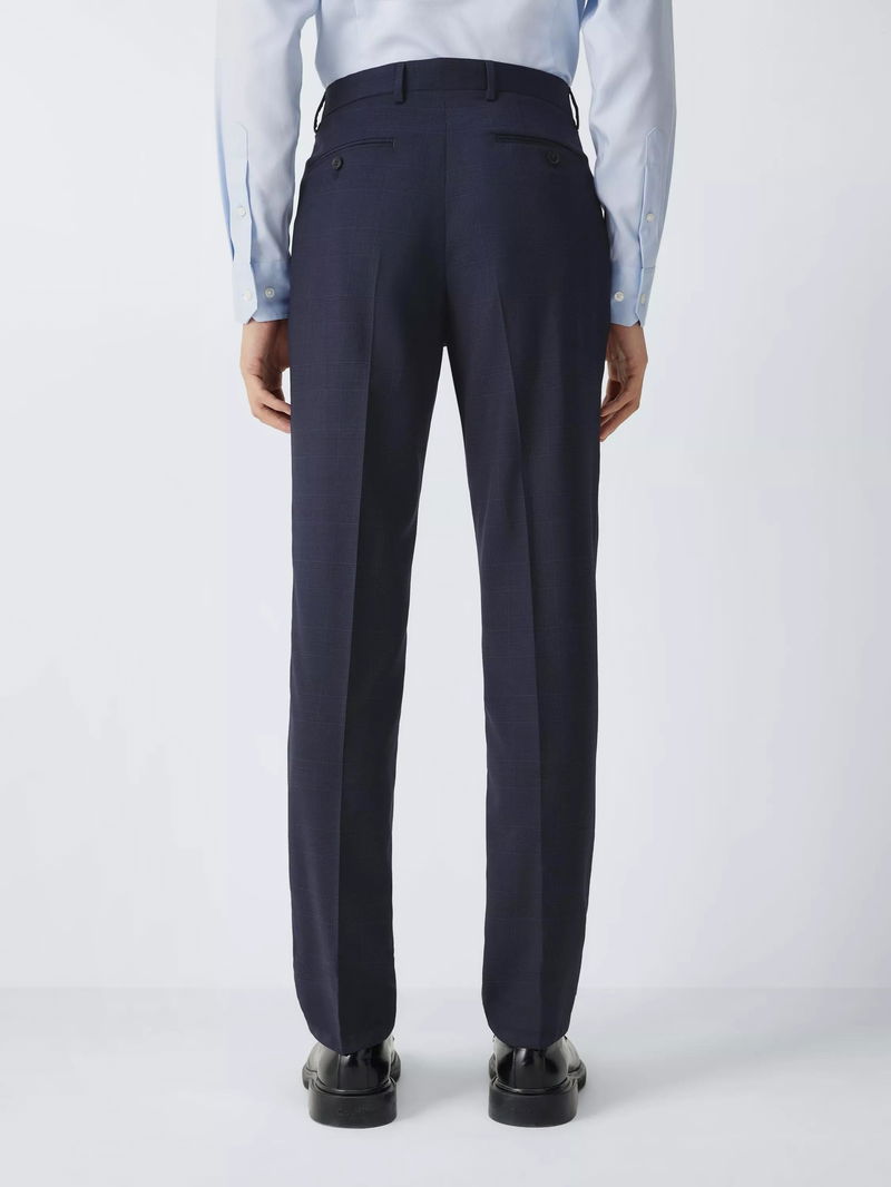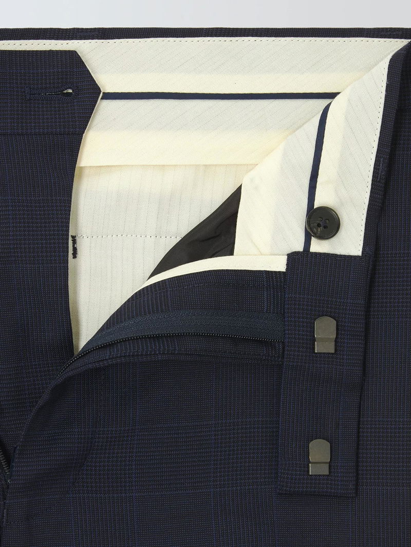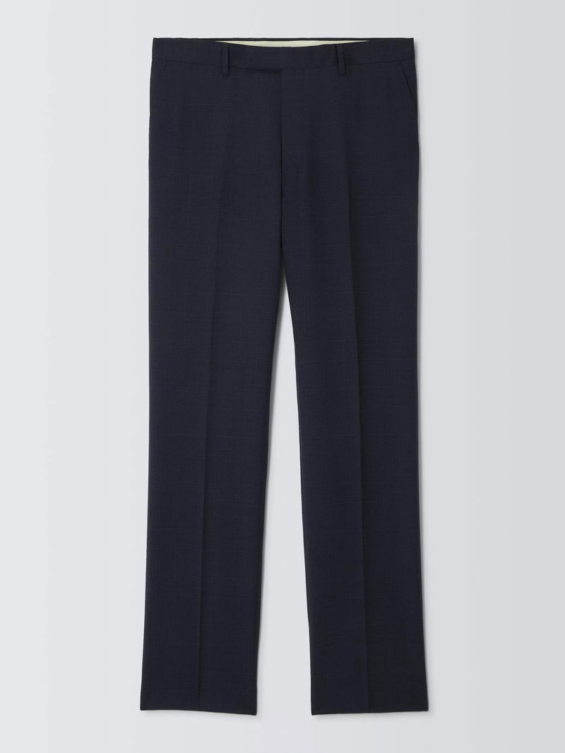 Prince Of Wales Check Wool Suit Trousers, Navy Check