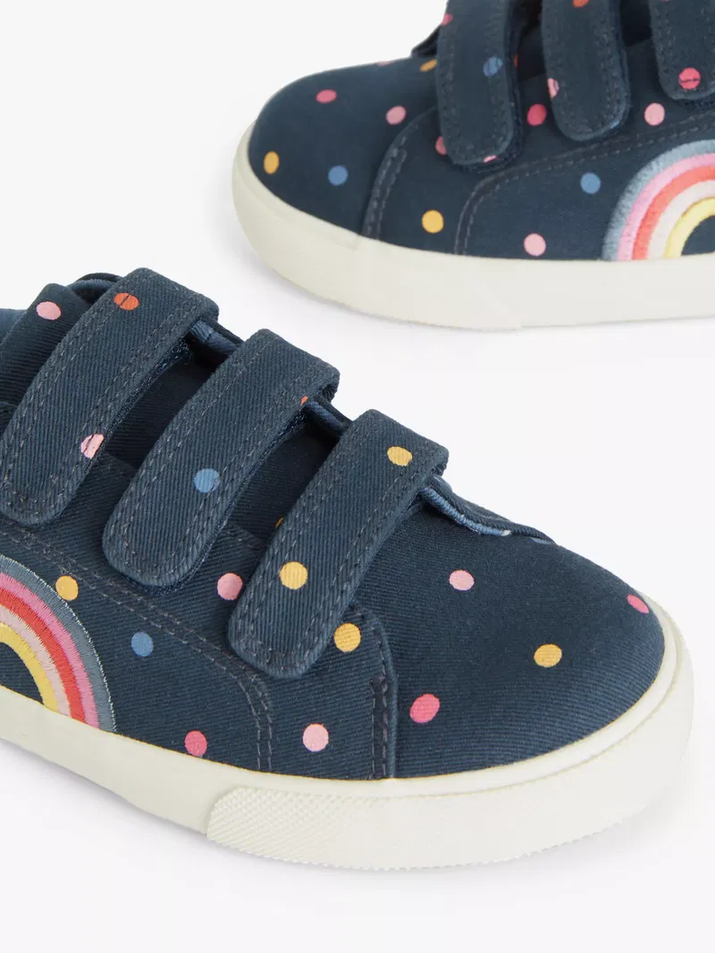 Cool trainers for cool kids. We've kitted these shoes out with an adjustable touch and close strap, meaning they're on in a jiffy and leaving more time for park fun. The cotton uppers and lining make them comfortable for all-day wear, and the rainbow print was always going to be a winner. Cool might be an understatement here...