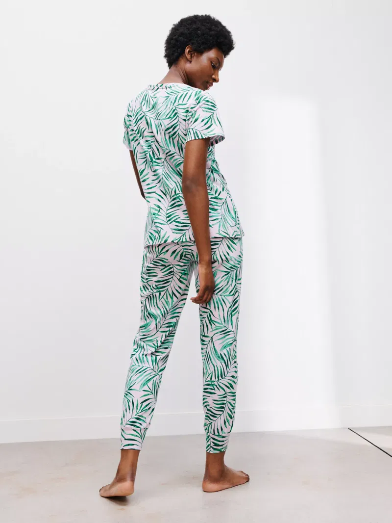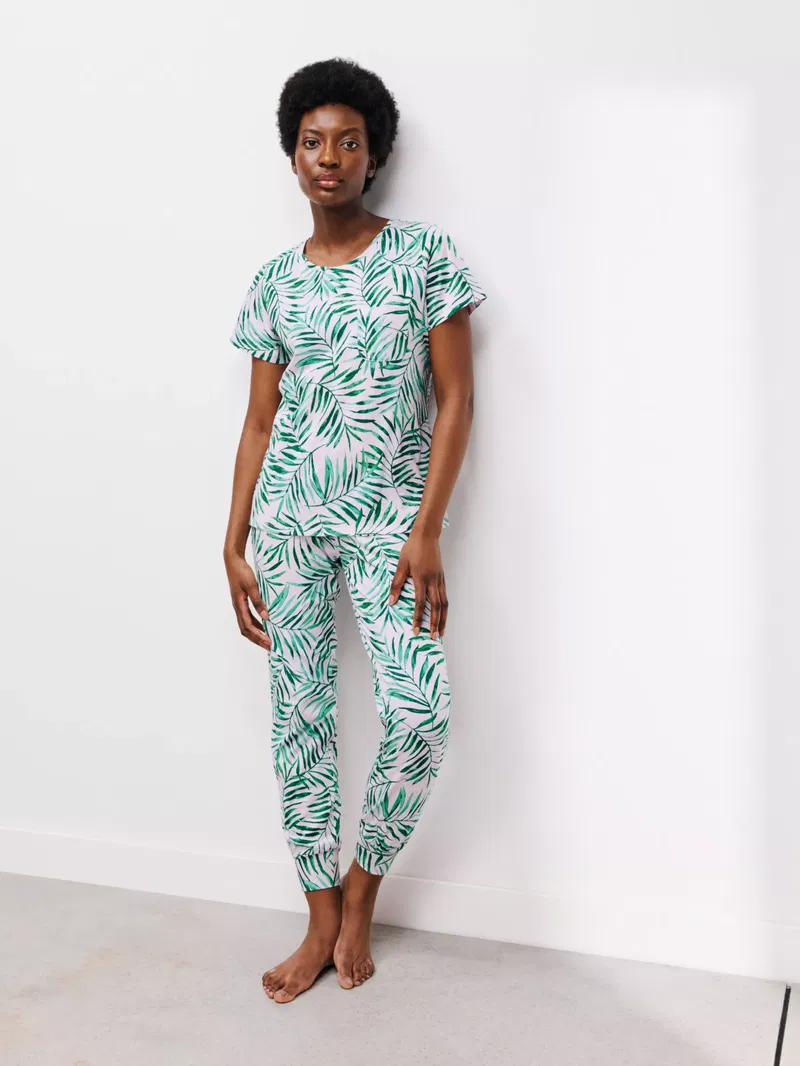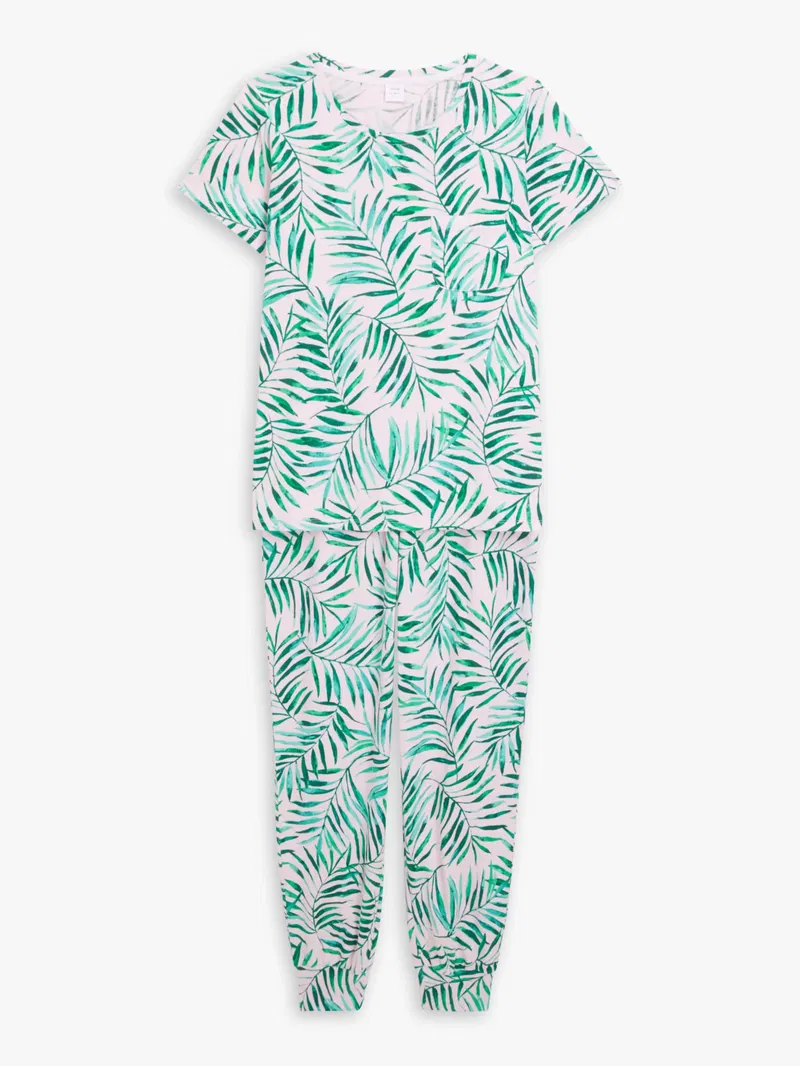 Made using 100% cotton for a soft, jersey fit, this set comes in a classic short sleeve style and is designed with a bold and colourful all over palm print.