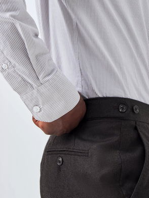 Woven in premium super 100's wool with a modern birdseye design, this suit trouser is tailored to a regular fit specification which features a mid-rise and a straight leg. Finished with AMF stitching on the front pockets, the trouser is lined with ecru pocketing and features a striped waistband.