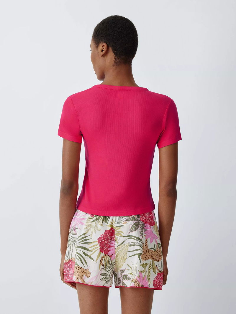 Ribbed Crew Neck Pyjama Top, Rose Red