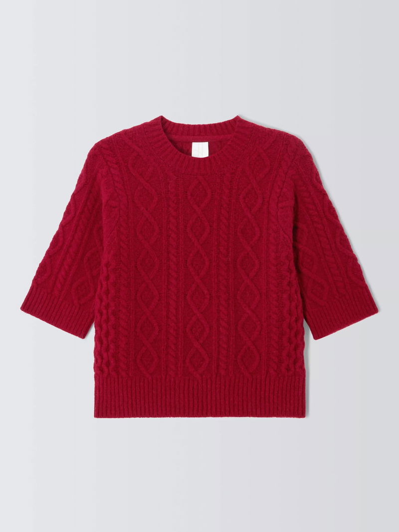 Soft Cable Knit Short Sleeve Jumper, Red