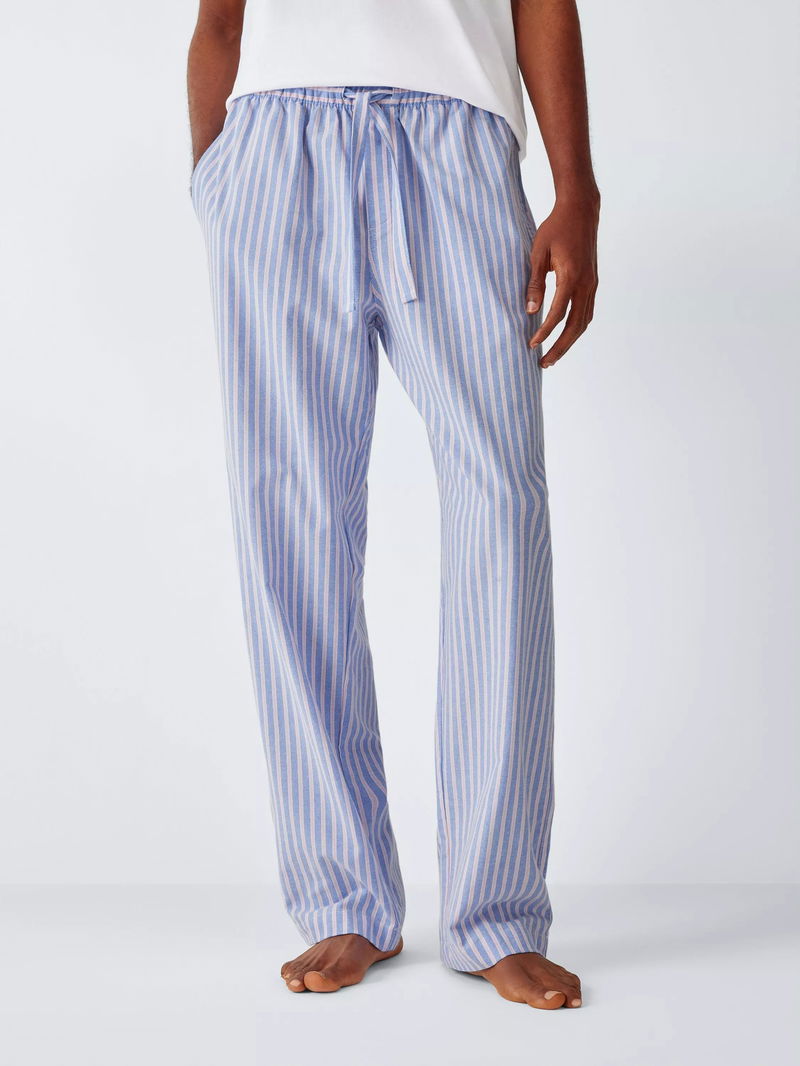 Stripe Organic Cotton Pyjama Bottoms, Blue Light