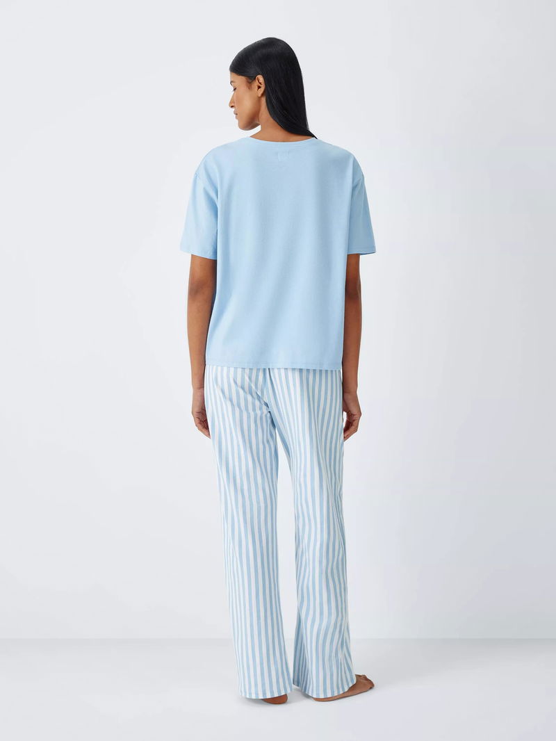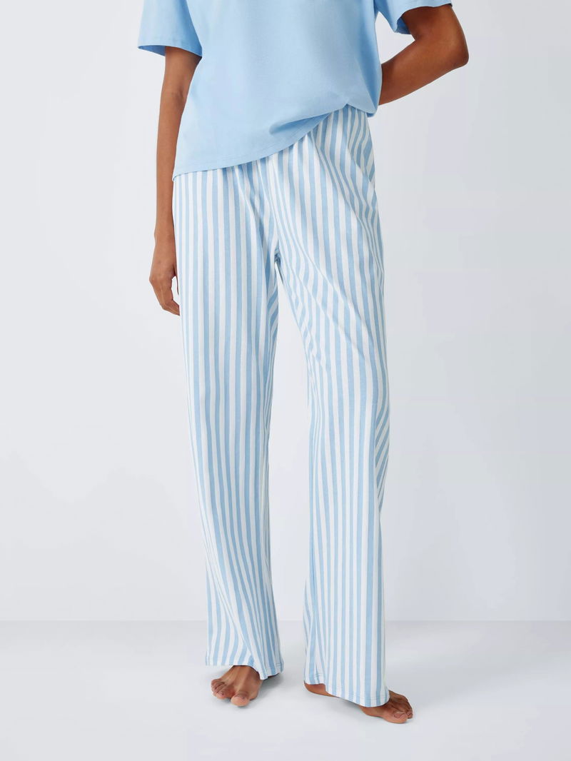 Stripe Pure Cotton Wide Leg Long Pyjama Set, Blue/Ivory