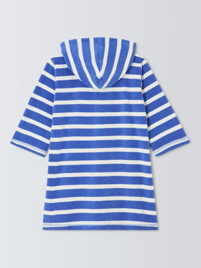 Covered in deckshair stripes, this hooded towel is great for keeping little ones warm while drying up. Complete with a hood and kangaroo pocket.