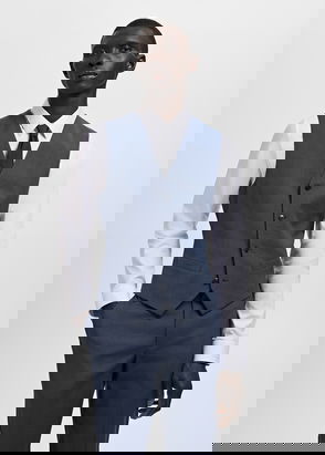 Woven in premium super 100's wool with a modern birdseye design, our waistcoat is tailored to our regular fit specification and fastens with mock horn buttons and an adjustable back buckle.