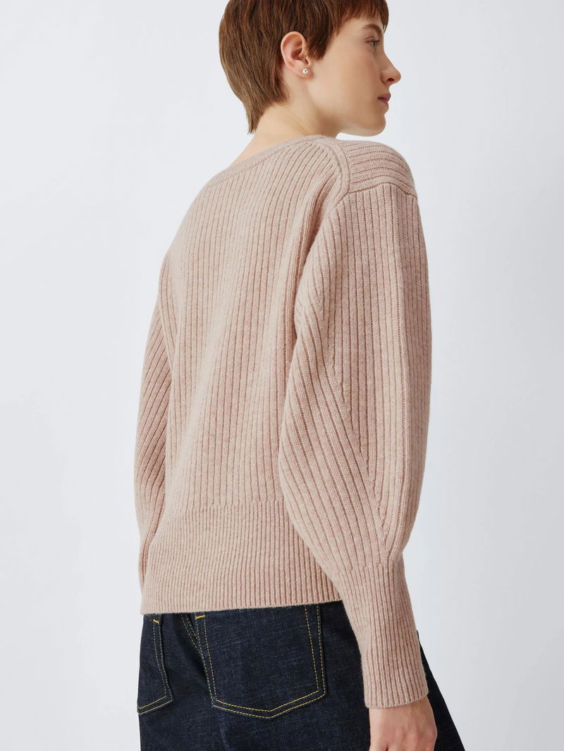 Sweetheart Lambswool Rib Knit Jumper, Beige
