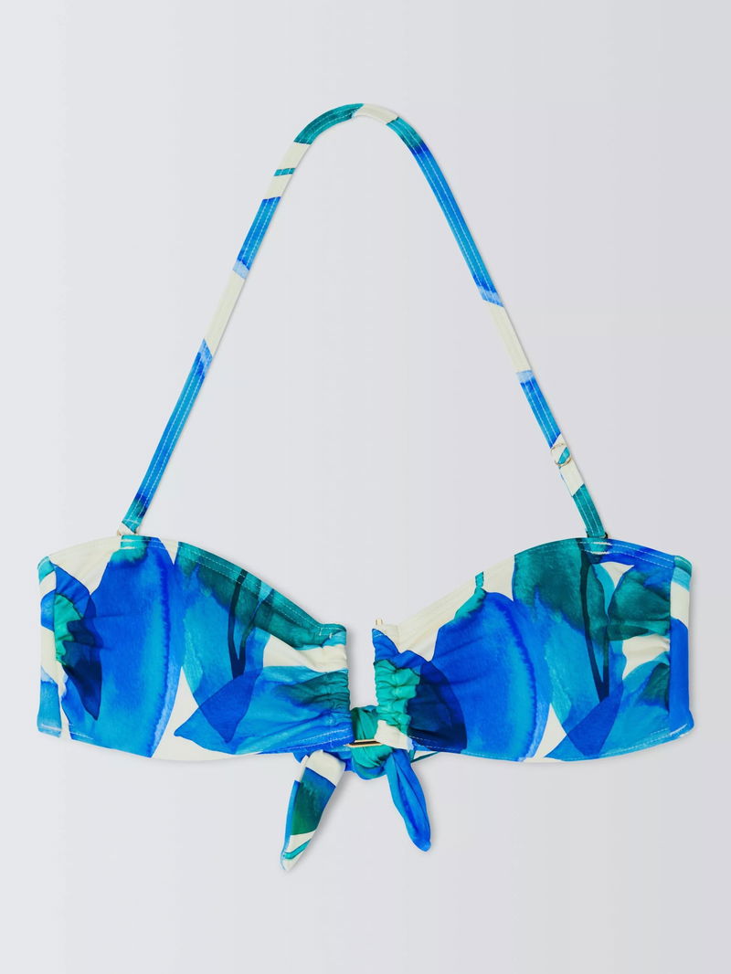 Tahiti Leaf Tie Back Bandeau Bikini Top, Ivory/Blue Print