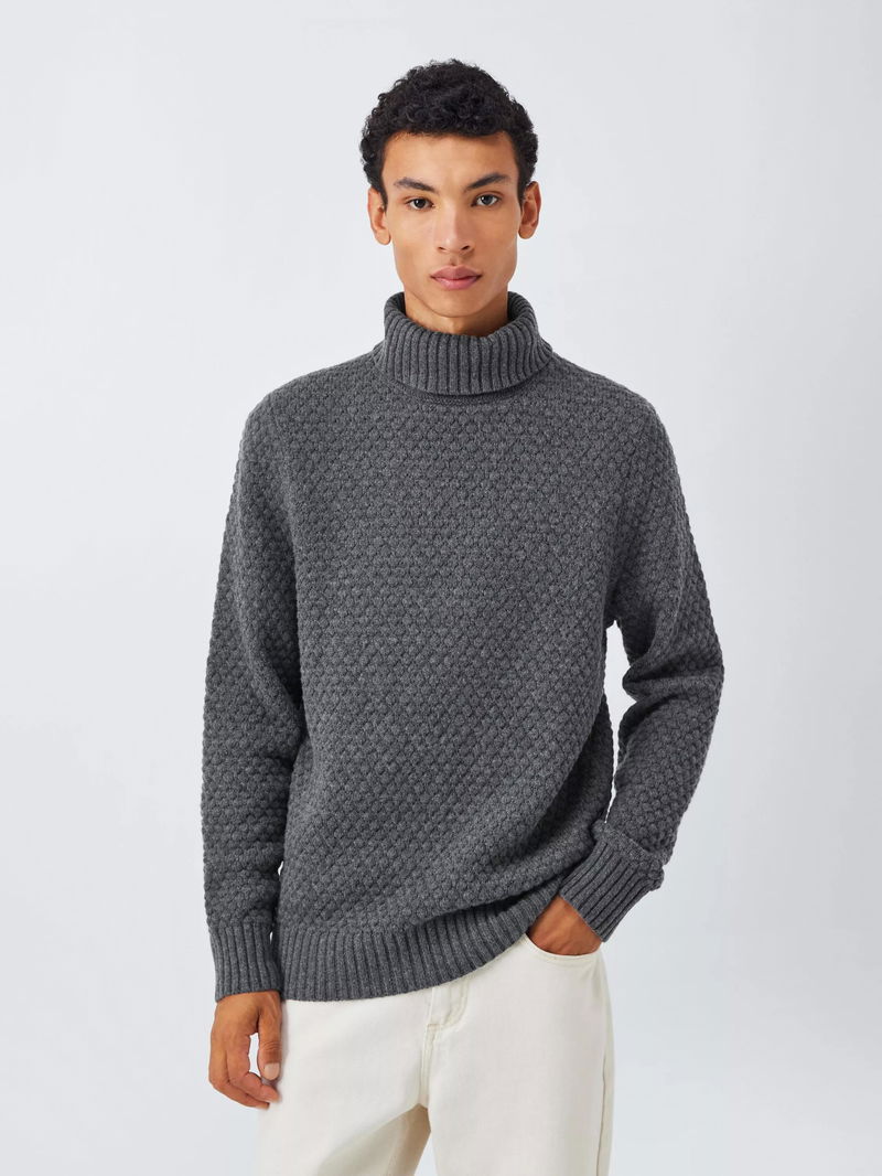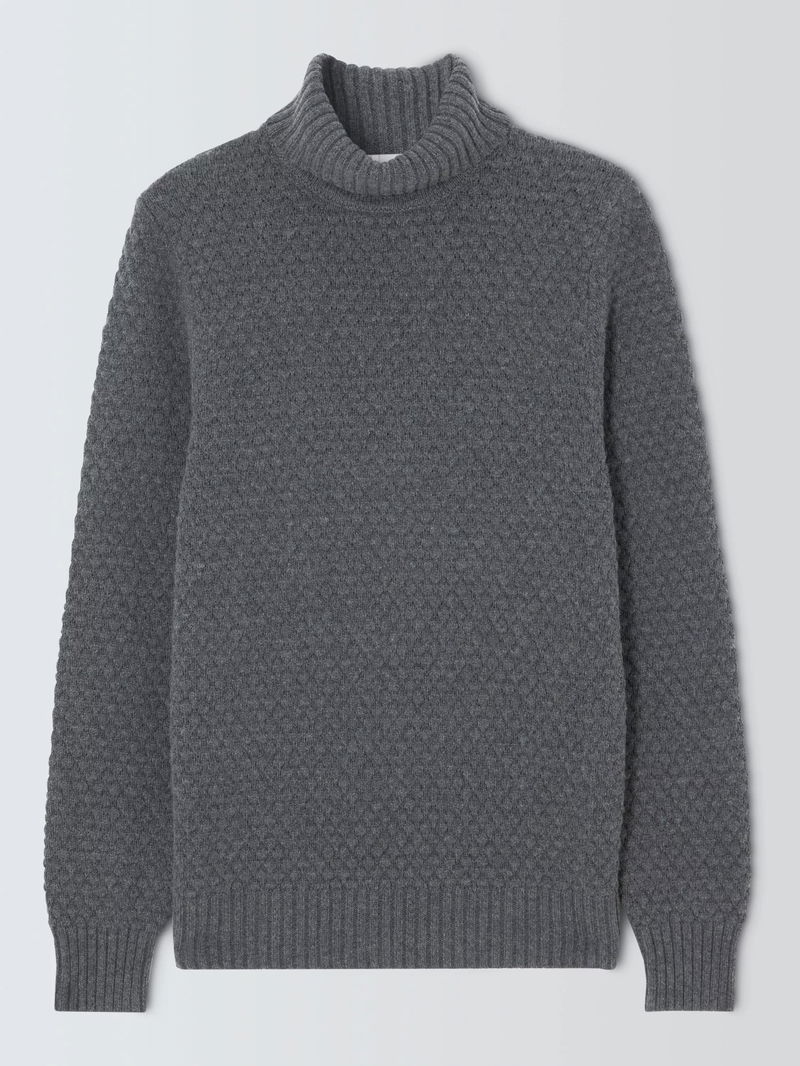 Textured Stitch Roll Neck Jumper, Storm Grey