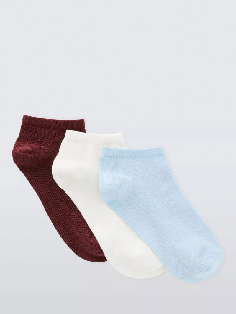 Textured Trainer Socks, Pack Of 3, Burgundy