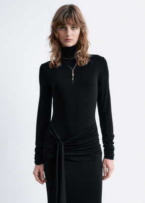 Effortlessly flattering with a smart, yet boho vibe, this dress is all about the textures. Tie detailing at the wrists and neckline add a whimsical feel whilst the gentle pleating and tiered shape adds shape and movement. Just add your favourite boots.
