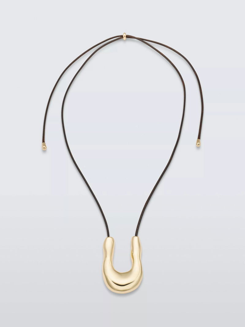 Waved U Pendant Necklace, Gold