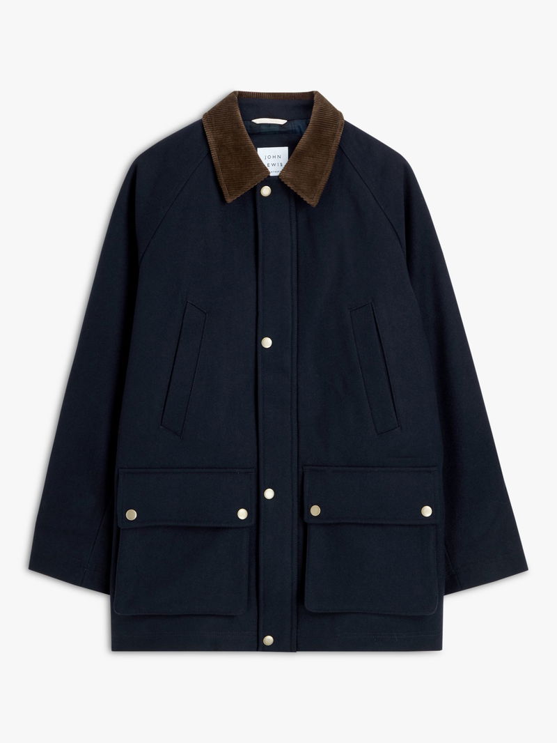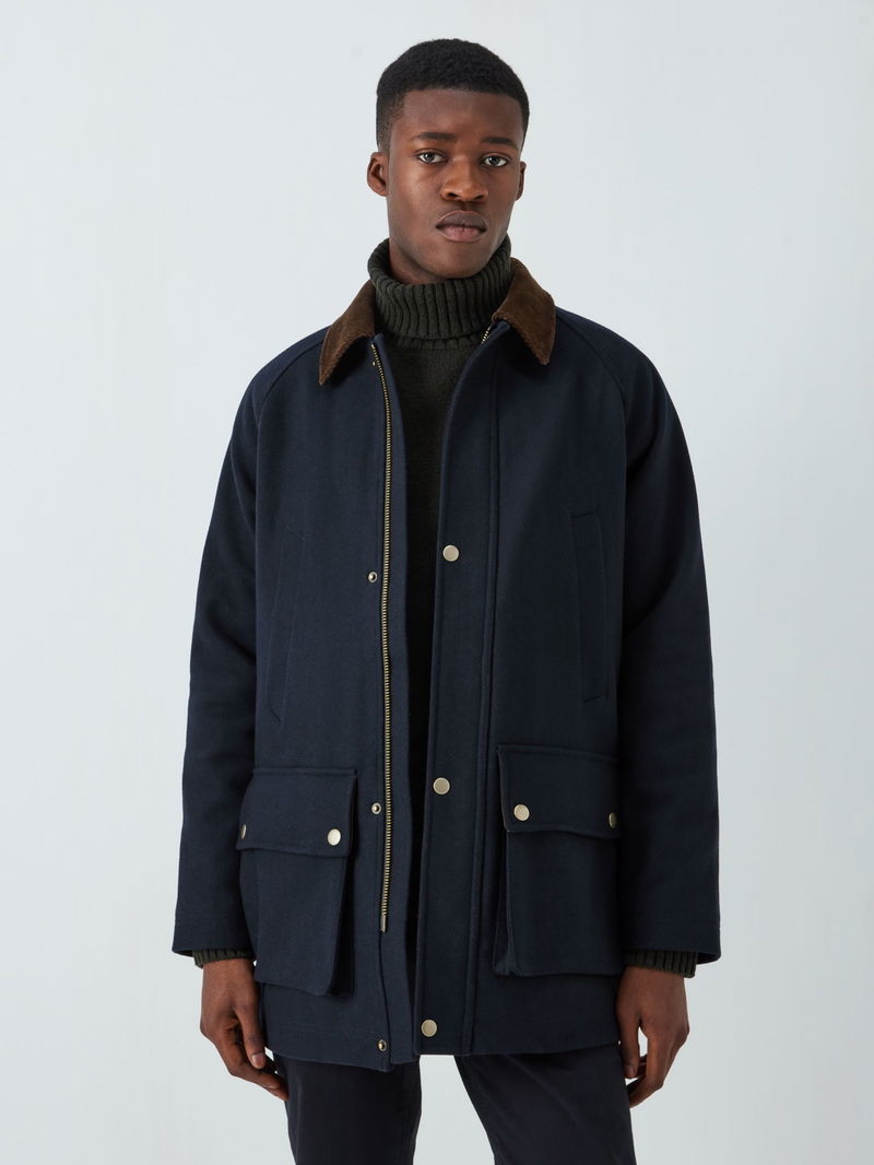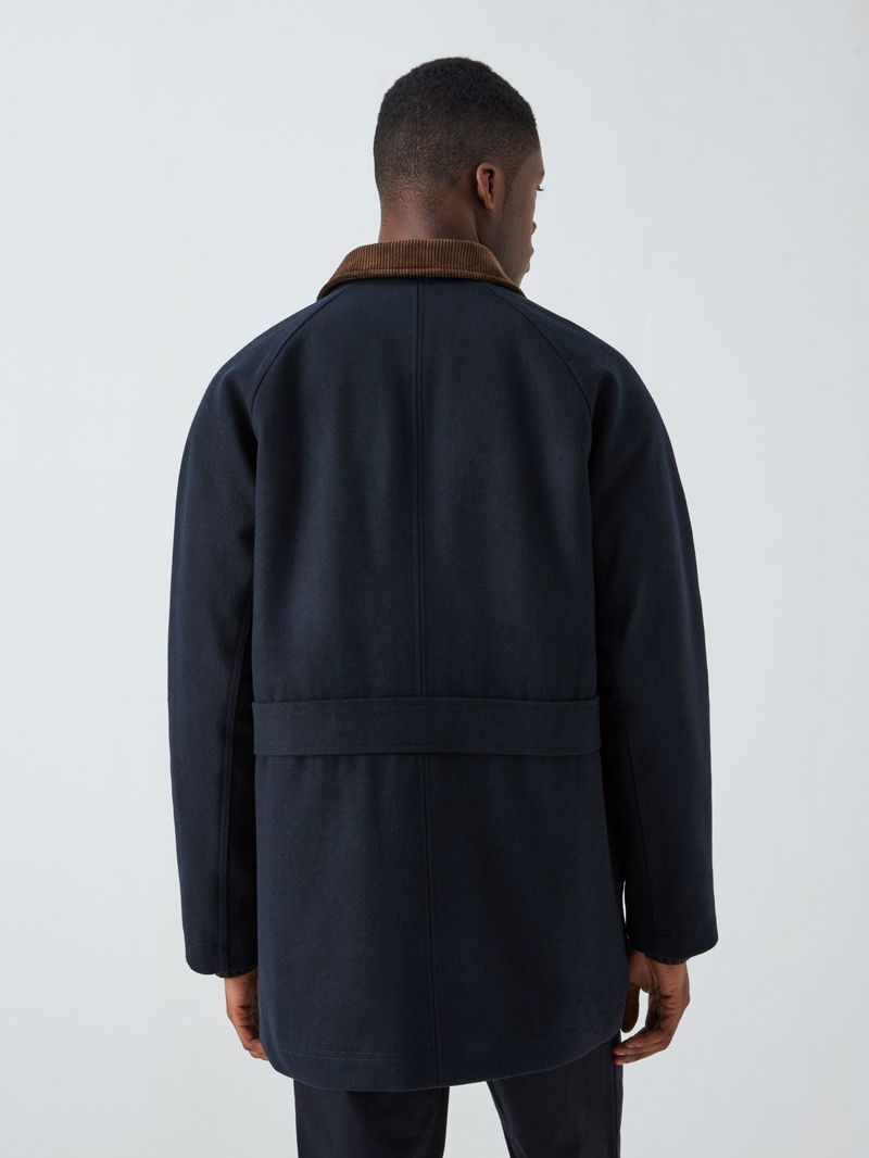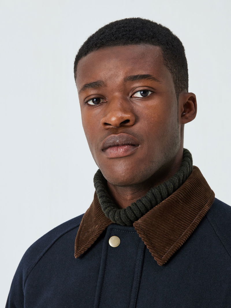 This coat draws inspiration from classic designs. Made from a robust wool blend with raglan sleeves for a comfortable fit and easy range of motion, the check lining, corduroy collar, and four front pockets round off a sophisticated vintage feel.