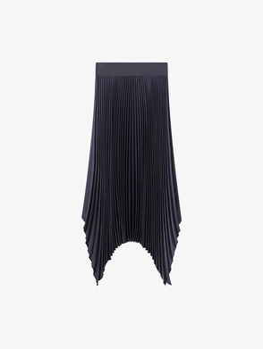 The Ade Knit Weave Plissé Skirt is a pleated midi skirt, with a statement a-symmetric hem.