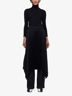 Lightweight garment-pleated wool- and polyester-blend flannel skirt.· High-rise· Elasticized waistband · Asymmetric hem.