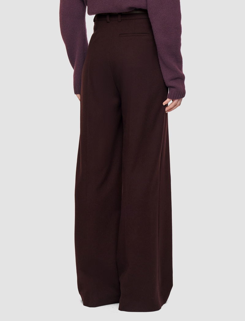 The Alana Flannel Wool Trousers are a high-rise, wide leg trouser. Crafted from virgin wool, they have a smooth, woollen texture. These trousers are finished with central pressed creases, delivering a flattering, relaxed-tailored look.