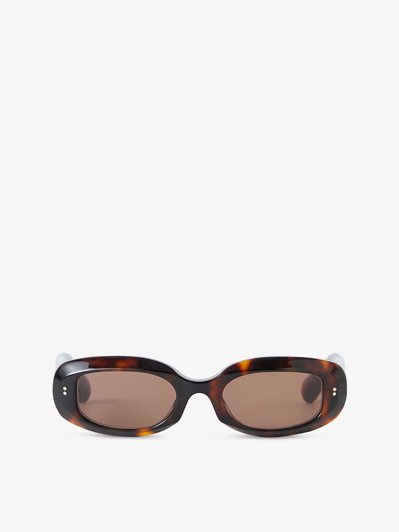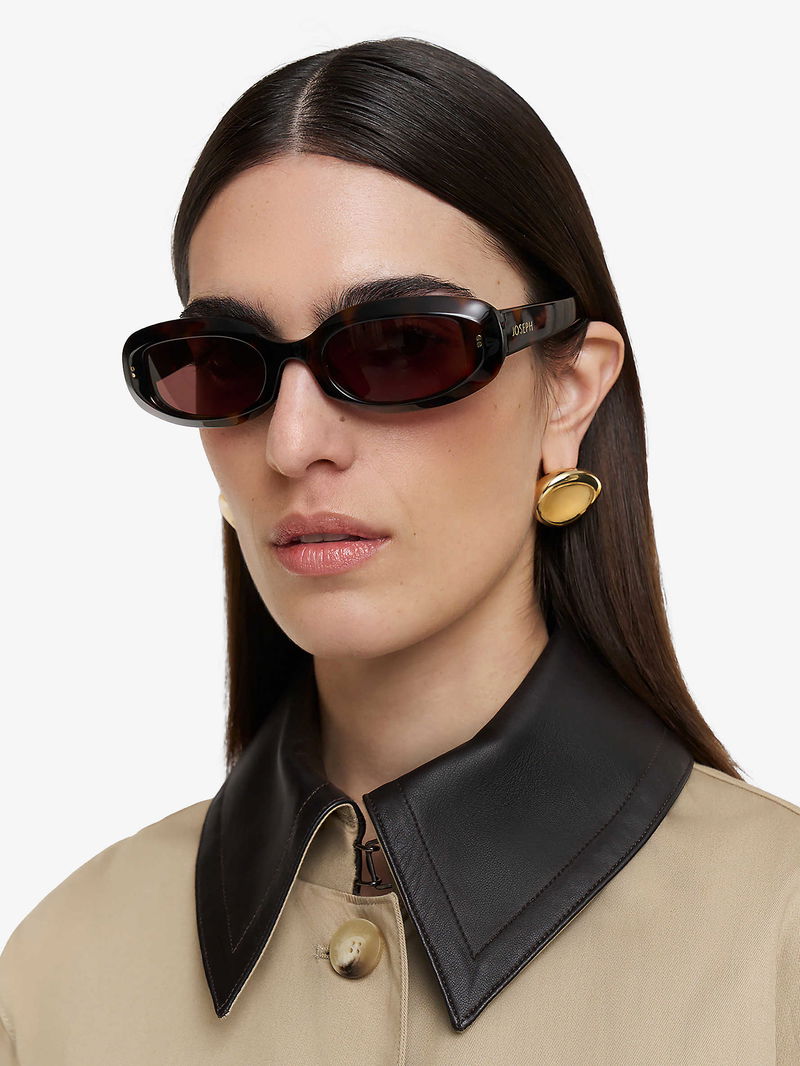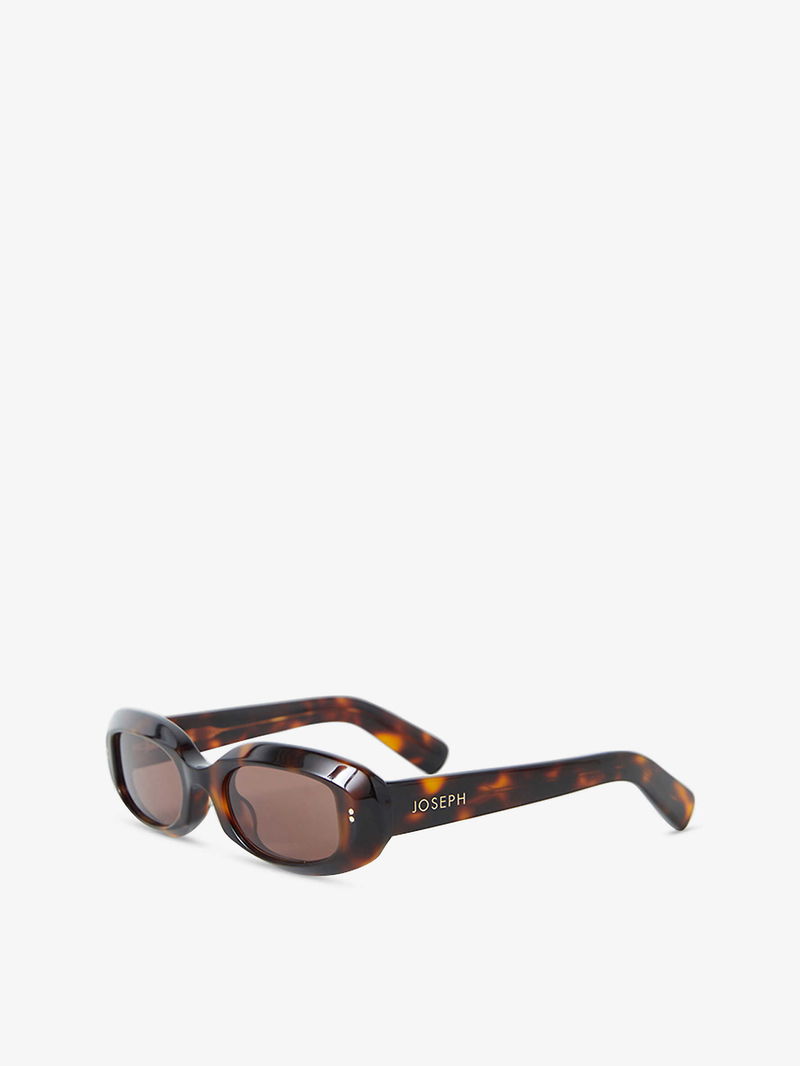 JOSEPH acetate sunglasses. Tinted lenses, branding to arms, tortoiseshell finish, 100% UV protection.