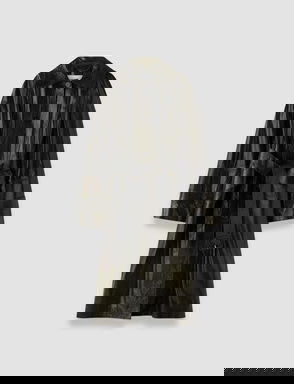 Cut in a collarless shape, it has a streamlined placket and flap pockets for interest. Layer yours over a chic turtleneck.