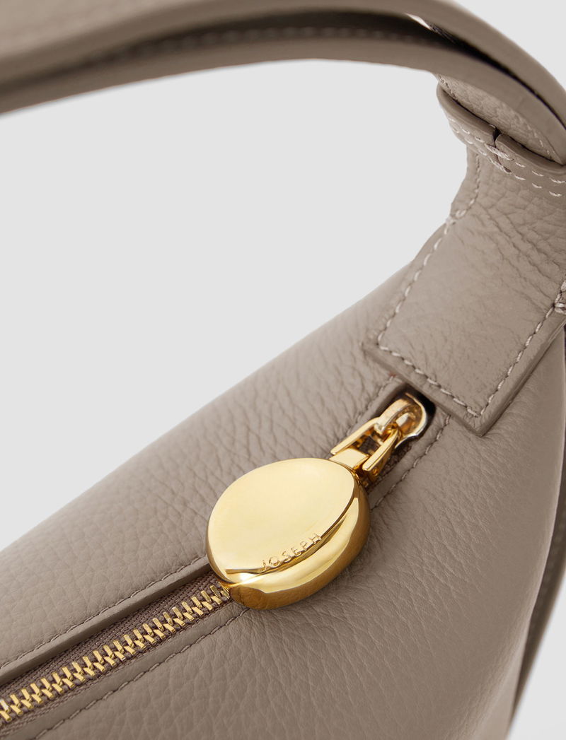 A compact shoulder bag crafted from fine-grain Italian leather with a smooth finish. Timeless and versatile, it’s designed with an adjustable strap for shoulder or crossbody wear. Finished with a gold-tone bean zip, embossed logo, and an internal card pocket.