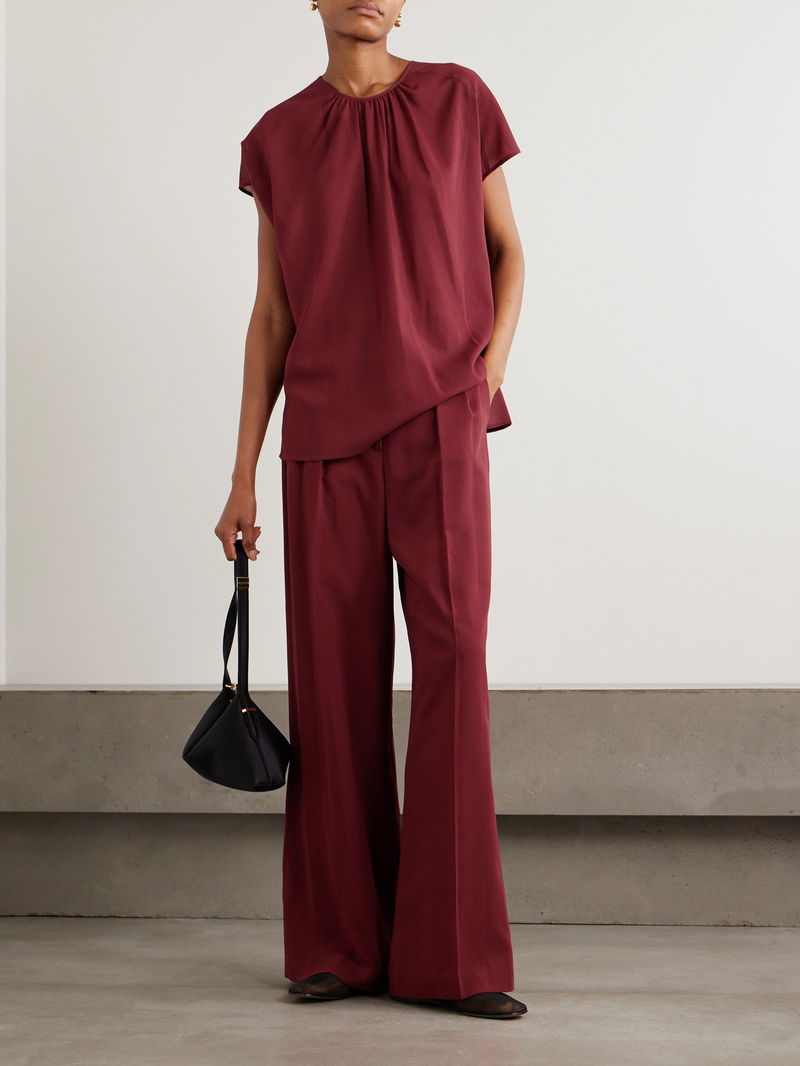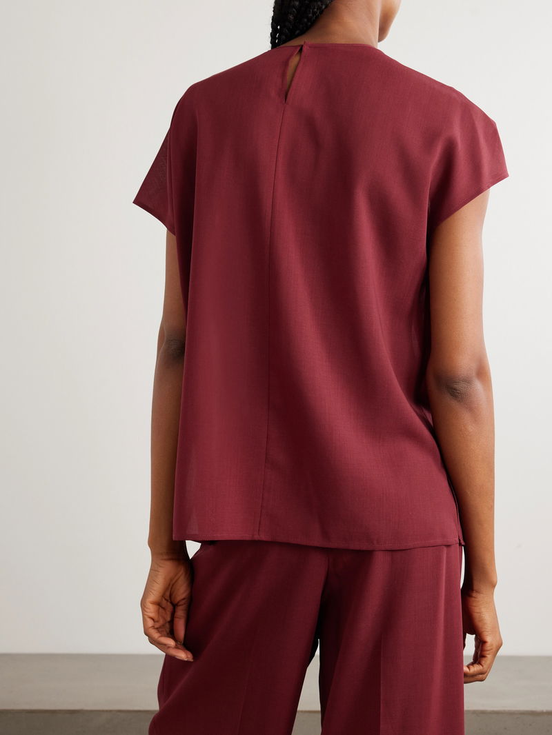 Joseph's 'Broca' blouse is bound to become a favorite that you'll return to often. It's made from slightly sheer wool-blend crepe with cap sleeves and a gathered neckline.
