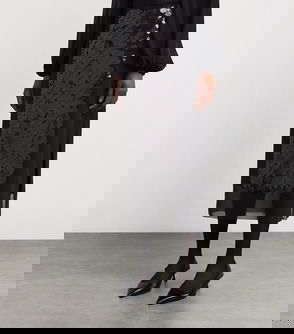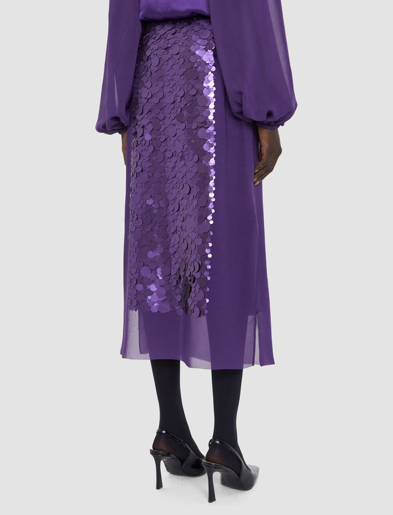 The Cambo Chiffon Sequin Skirt is a striking A-line skirt. A sheer chiffon overlay, embellished with matte sequins, layers comfortably over a tonal slip skirt. Together they create a dimensional silhouette that moves with ease and catches the light.