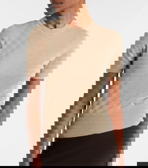 Slim fit, round neckline, short sleeves, brushed texture, ribbed trims