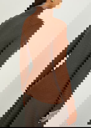 Semi-sheer lightweight knit cashmere turtleneck. Rib-knit collar, hem, and cuffs.