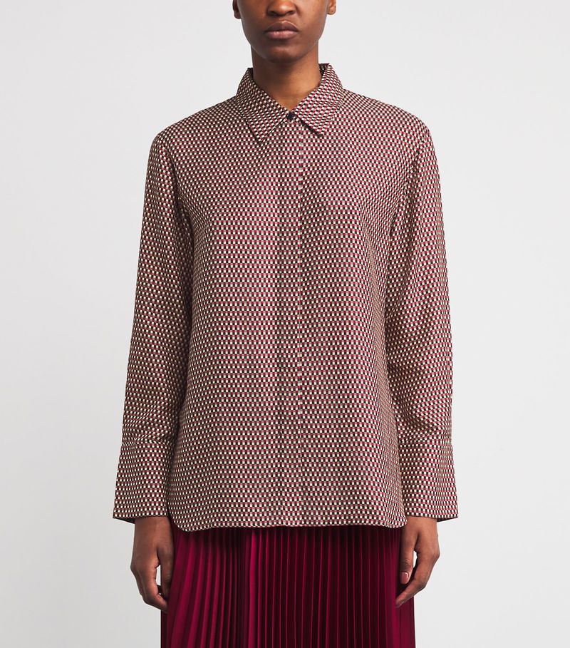 The all-over check print on joseph's Joe blouse makes it a dynamic design, perfect for making an entrance. The concealed placket ensures the print remains uninterrupted, creating a clean, continuous look, while the silky fabric keeps it comfortable against the skin.