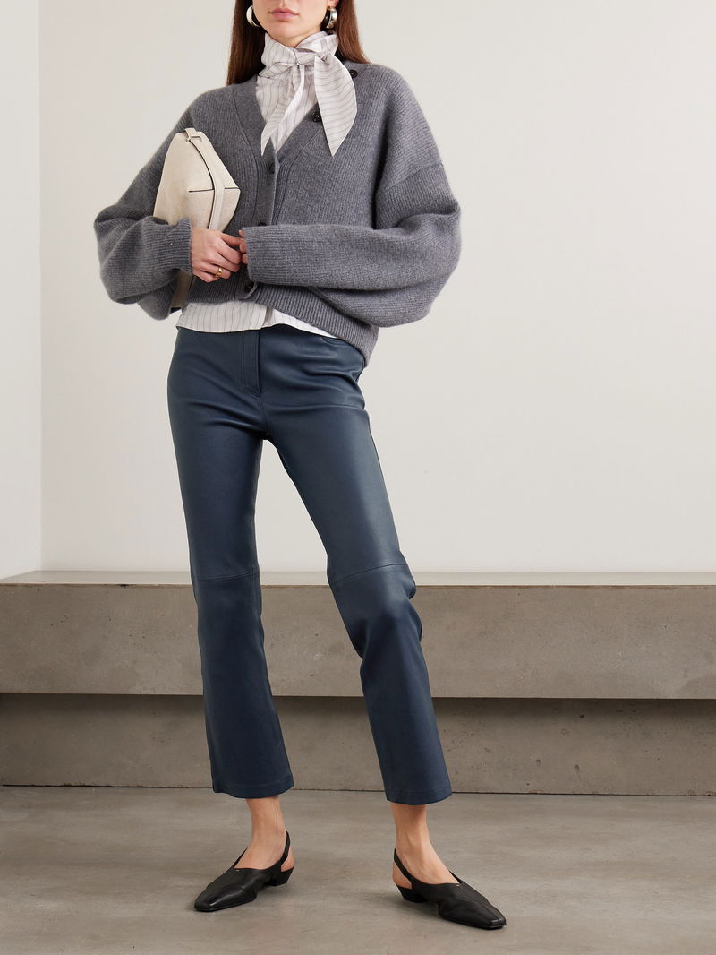 Joseph's 'Duke' pants are ones you'll reach for year after year. Made in France from supple leather with some stretch, they sit high on the waist and have slim legs which flare out above the ankles. Take advantage of the cropped hems and put your favorite flats on display.