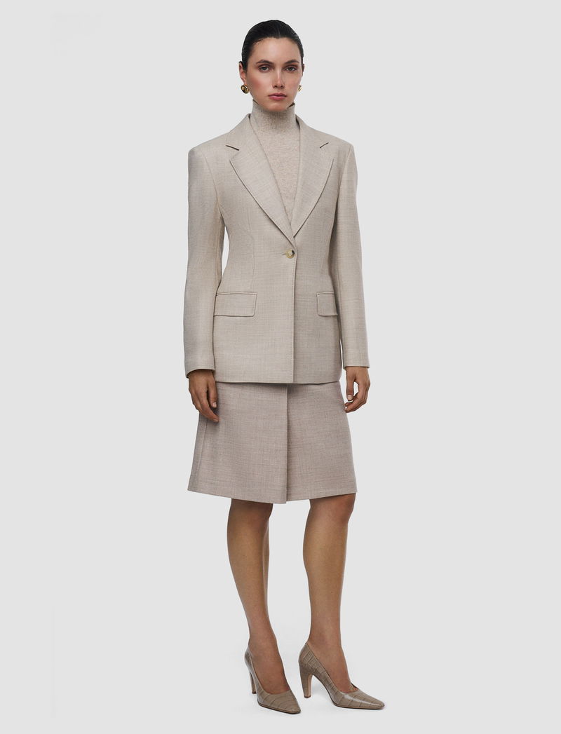 The Fallon Virgin Wool Jacket is a sculpted blazer crafted from virgin wool. A fluid tailoring piece, its smooth, woollen texture adds subtle structure and a sense of classic character. Its precision Y-darts at the waist define a slim, shaped silhouette.